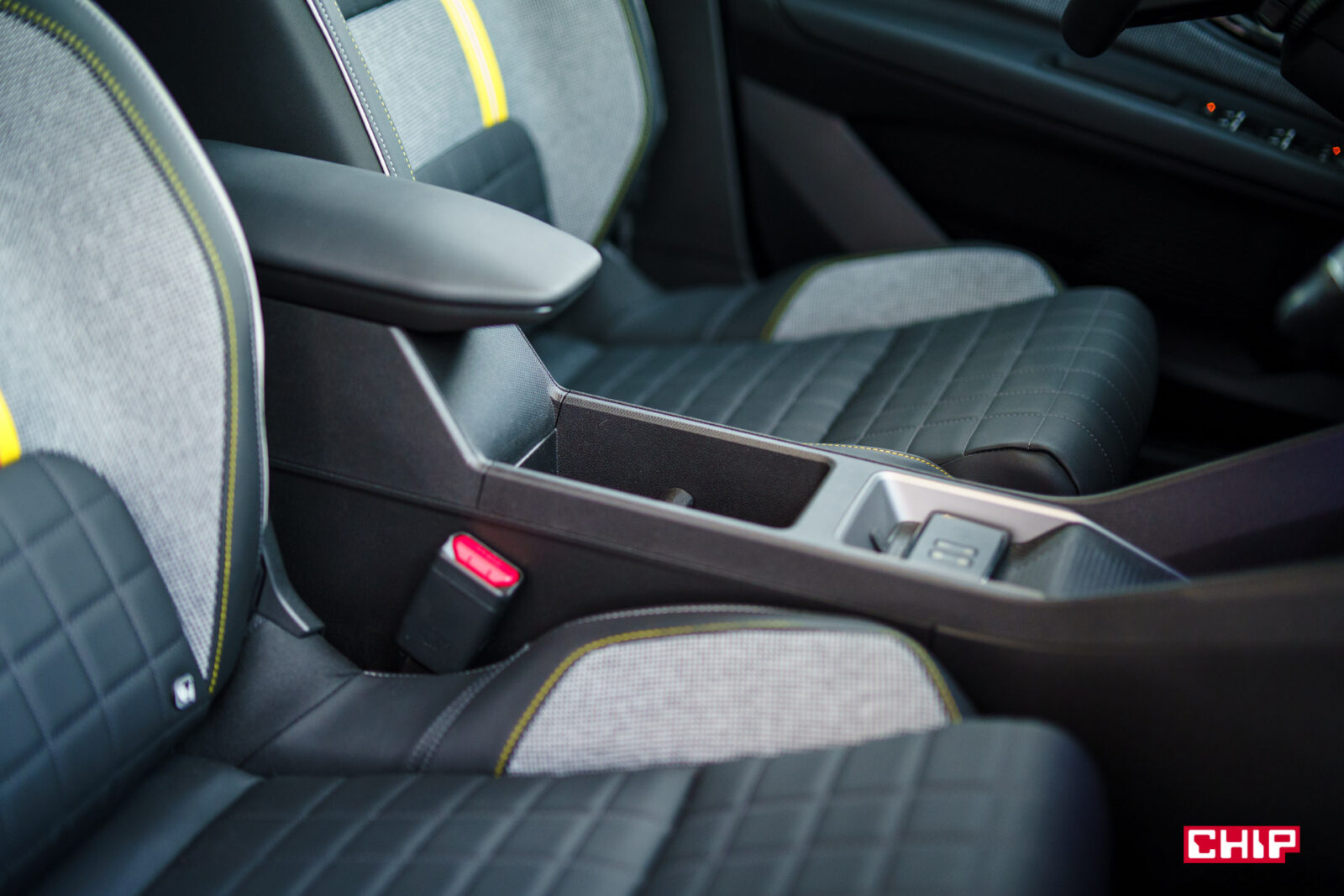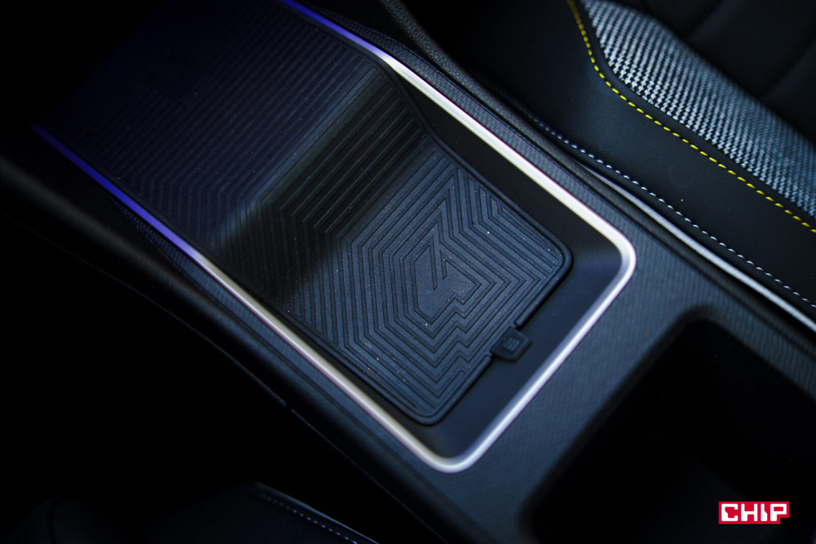 W zasadzie jedyną różnicą jest podświetlany napis na desce rozdzielczej przed pasażerem z nazwą modelu. Poza tym mamy tu taki sam, lekko usportowiony kształt bardzo wygodnych foteli, materiałowe obicia drzwi, piano black w miejscach, których na co dzień nie dotykamy, więc mniej się palcuje i rysuje. Takie same przeszycia deski rozdzielczej, identycznie ułożone ekrany, przyciski do sterowania klimatyzacji oraz układ elementów tunelu środkowego. Wszystko jest wykonane z ciekawych, fakt że niezbyt drogich, ale dobrej jakości materiałów.