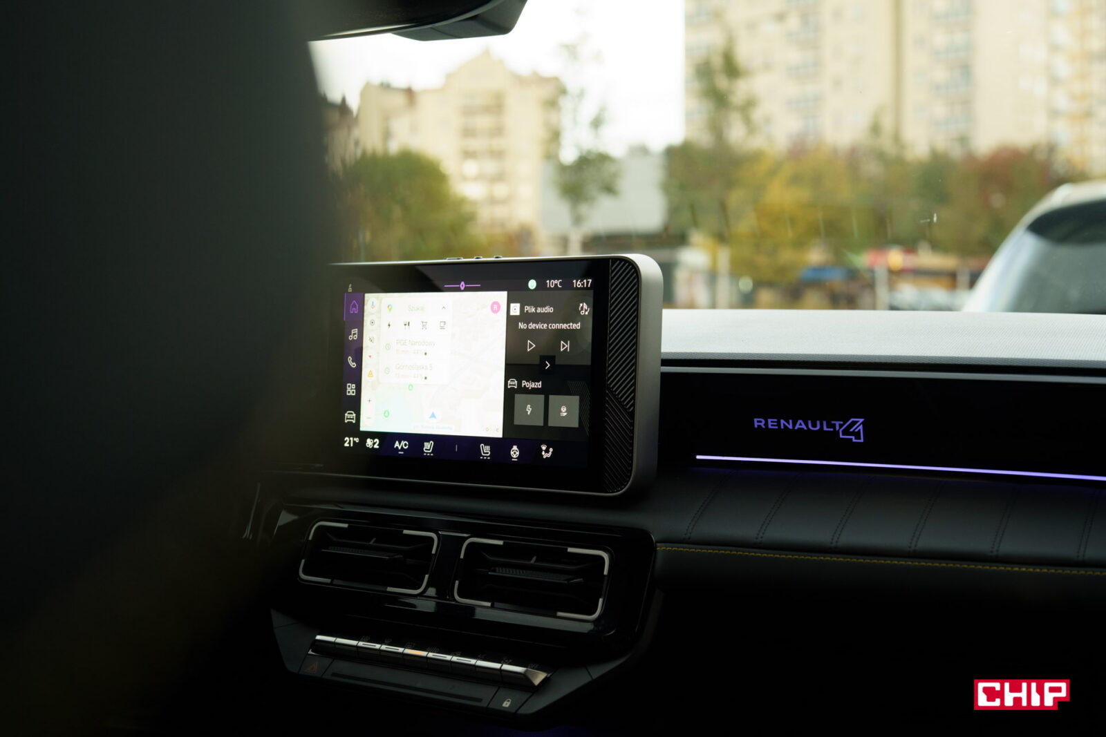W wyższych wersjach wyposażenia Renault 4 E-Tech ma dwa 10-calowe ekrany. W niższych ekran kierowcy ma przekątną 7 cali. Wyświetlacze są jasne, bardzo dobrej jakości i w połączeniu ze sprawnie działającym interfejsem trudno jest powiedzieć, że siedzimy w aucie z segmentu budżetowego.