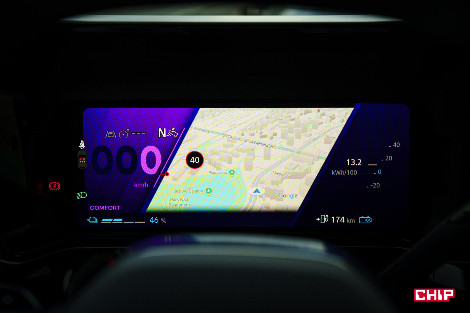 Oczywiście jeśli chcemy, możemy korzystać z interfejsu telefonu w ramach Androida Auto lub Apple CarPlay, ale równie dobrze podłączonego smartfonu możemy używać wyłącznie do prowadzenia rozmów i jako źródła muzyki. Warto jednak pamiętać, że tylko fabryczna nawigacja pokaże nam prognozowany stan naładowania akumulatora po dojechaniu do miejsca docelowego i zaproponuje punkty ładowania po drodze.