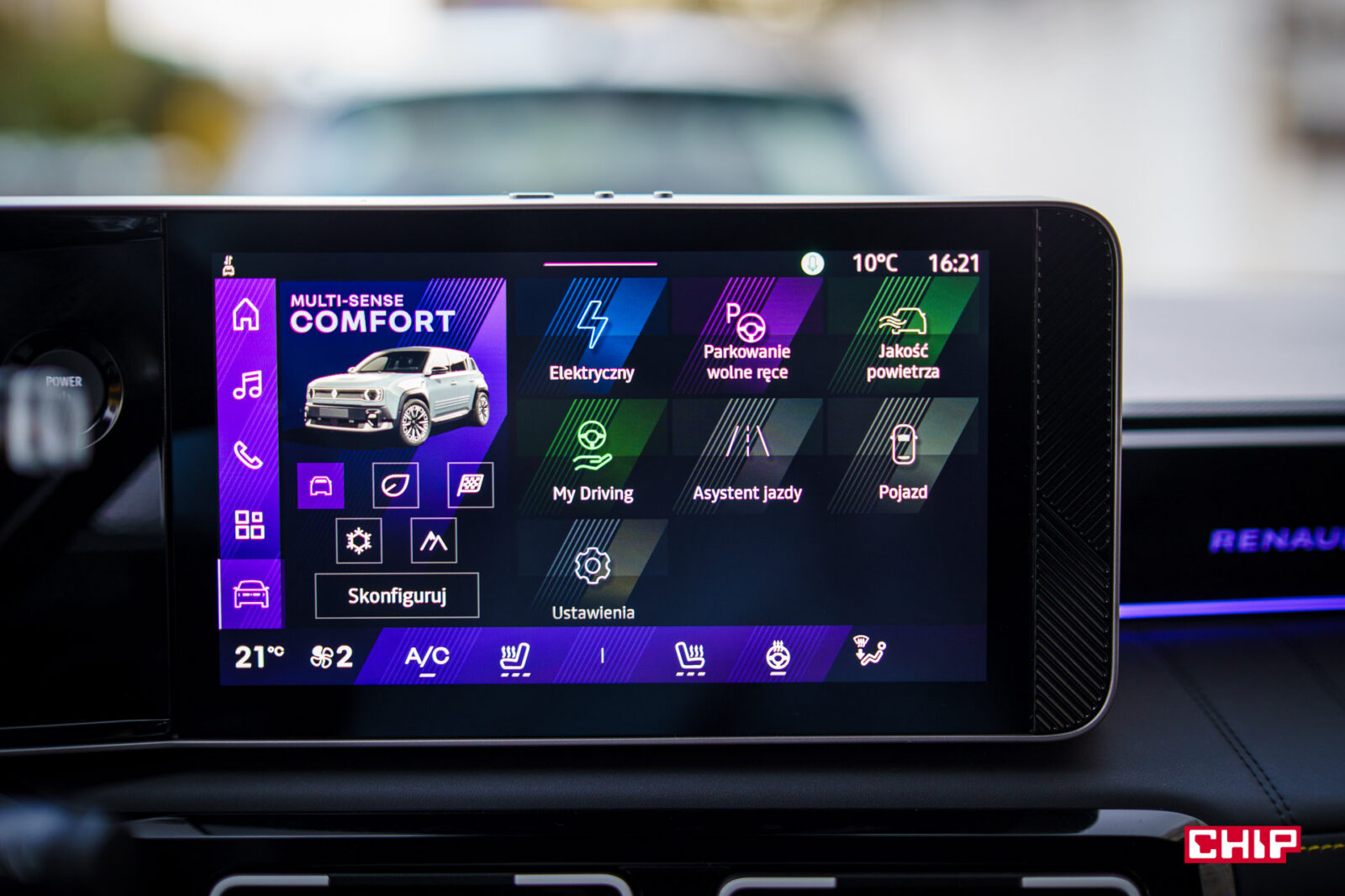 Test odbywał się w październiku i pogoda naprawdę nam nie dopisała. Temperatury w okolicach 10 stopni, silny wiatr i ciągłe opady deszczu, więc czwórka miała pod górkę. W mieście, w zależności od natężenia ruchu, pogody i temperatury, zużywała od 12 kWh/100 km (cieplejsze dni, brak opadów) do nawet 17 kWh/100 km (opady, niskie temperatury, dynamiczna jazda). Pamiętajcie – to jest elektryk. Nawet z pompą ciepła (część standardowego pakietu wyposażenia), bez przygotowania go, kiedy całą noc stoi pod chmurką – rano, z zimną baterią będzie Wam zużywał znacznie więcej prądu niż z baterią rozgrzaną. Oczywiście da się temu zarazić, ustawiając sobie czas odjazdu w aplikacji, tym samym dając mu szansę na przygotowanie baterii i temperatury wnętrza. Pokazaliśmy Wam wartość 17 kWh jako worst case scenario w polskich, jesiennych warunkach, ale nawet to nie powinno Was odstraszać, bo raz, że da się temu częściowo zarazić używając aplikacji Renault, a dwa – nawet jeśli nie będziecie tego robić, przy zużyciu wynoszącym 17 kWh/100 km, baterii wystarczy Wam na ponad 300 km.