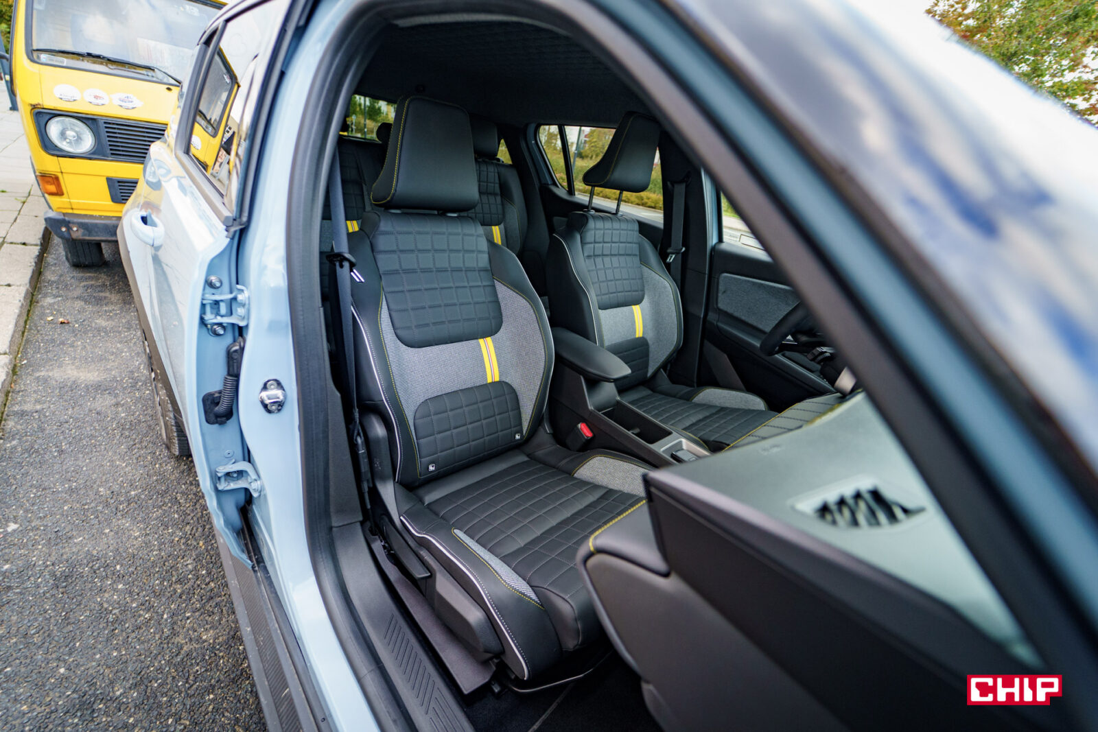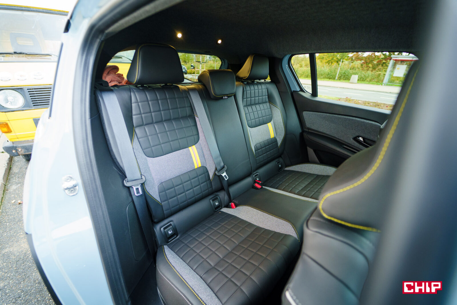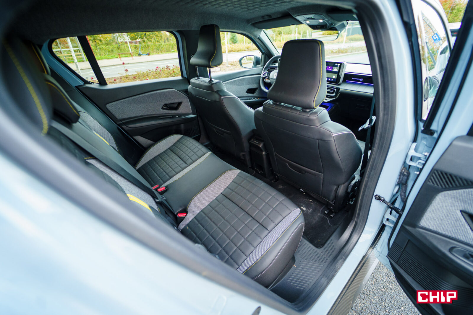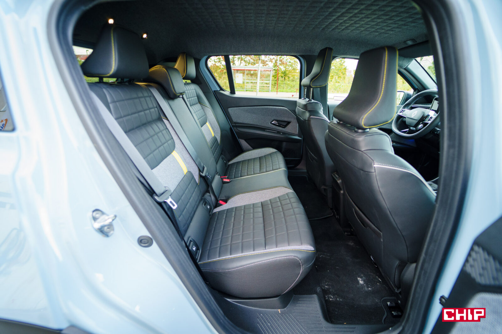 Różnicę czuć też na tylnej kanapie, gdzie ponownie, mamy więcej miejsca na nogi i nad głową. W zasadzie da się to odczuć nawet bardziej, niż z przodu i jazda w dwie osoby jest tutaj całkiem komfortowa. W Renault 4 możemy wsunąć stopy pod przednie fotele, czego nie dało się zrobić w nowej Piątce.