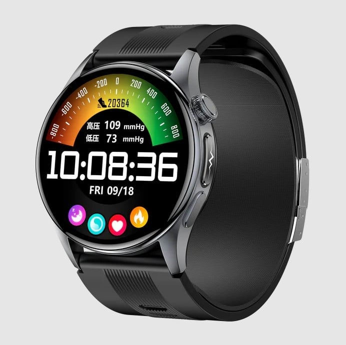 Większość tanich smartwatchy symuluje pomiar ciśnienia krwi na podstawie optycznego czujnika tętna, co daje bardzo niedokładne wyniki. Oczywiście nie oczekujemy od zegarka precyzji medycznego ciśnieniomierza, ale z drugiej strony dobrze jest mieć dokładniejsze pomiary. Dlatego Rogbid zdecydował się na znacznie bardziej zaawansowane i rzadkie rozwiązanie: szczelny system poduszki powietrznej (airbag), współpracujący z mikropompą Murata. To samo możecie znać z zegarków Watch D od Huawei. Zresztą, nazewnictwo jest tu również podobne.