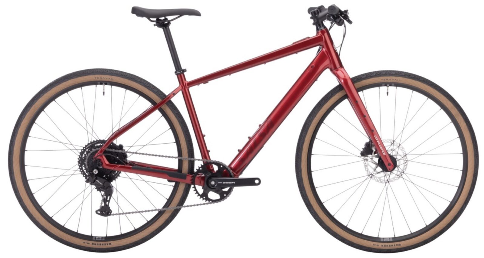 Salsa Cycles przygotowała dwie konfiguracje Confluence. Bardziej przystępna cenowo wersja ESSA 8 Flat-Bar kosztuje 2899 dolarów i jest wyposażona w napęd Shimano 1×8 oraz prostą kierownicę Salt Flat, co zapewnia bardziej wyprostowaną pozycję jazdy charakterystyczną dla rowerów trekkingowych. Droższy wariant CUES 10 Drop-Bar za 3499 dolarów oferuje już napęd Shimano 1×10 oraz klasyczną kierownicę szosową Cowbell. Większa liczba przełożeń i sportowa pozycja sprawdzają się lepiej na wymagających trasach ze znacznymi przewyższeniami. Obie konfiguracje dzielą wspólne komponenty, a w tym koła WTB przystosowane do opon bezdętkowych, szerokie opony Teravail Washburn o wymiarach 700×50 mm zapewniające komfort na szutrowych drogach, hydrauliczne hamulce tarczowe gwarantujące pewne hamowanie nawet przy pełnym obciążeniu oraz kompatybilność z regulowaną sztycą podsiodłową.
