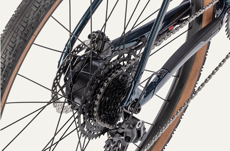 Widelec również został wyposażony w trzyczęściowe mocowania po obu stronach, co jest idealne do montażu toreb typu fork bag niezakłócających sterowania. Dodatkowe punkty montażowe na przedni i tylny bagażnik dopełniają obrazu roweru przygotowanego do bikepackingu. Tego typu konfiguracja pozwala na zabranie namiotu, śpiwora, odzieży i prowiantu bez konieczności korzystania z plecaka. W połączeniu z elektrycznym wspomaganiem redukującym zmęczenie otwiera to możliwość wielodniowych wypraw dla szerszego grona rowerzystów. Właśnie te praktyczne aspekty bikepackingu wyróżniają Confluence na tle konkurencji, gdzie często skupiano się wyłącznie na samym wspomaganiu.