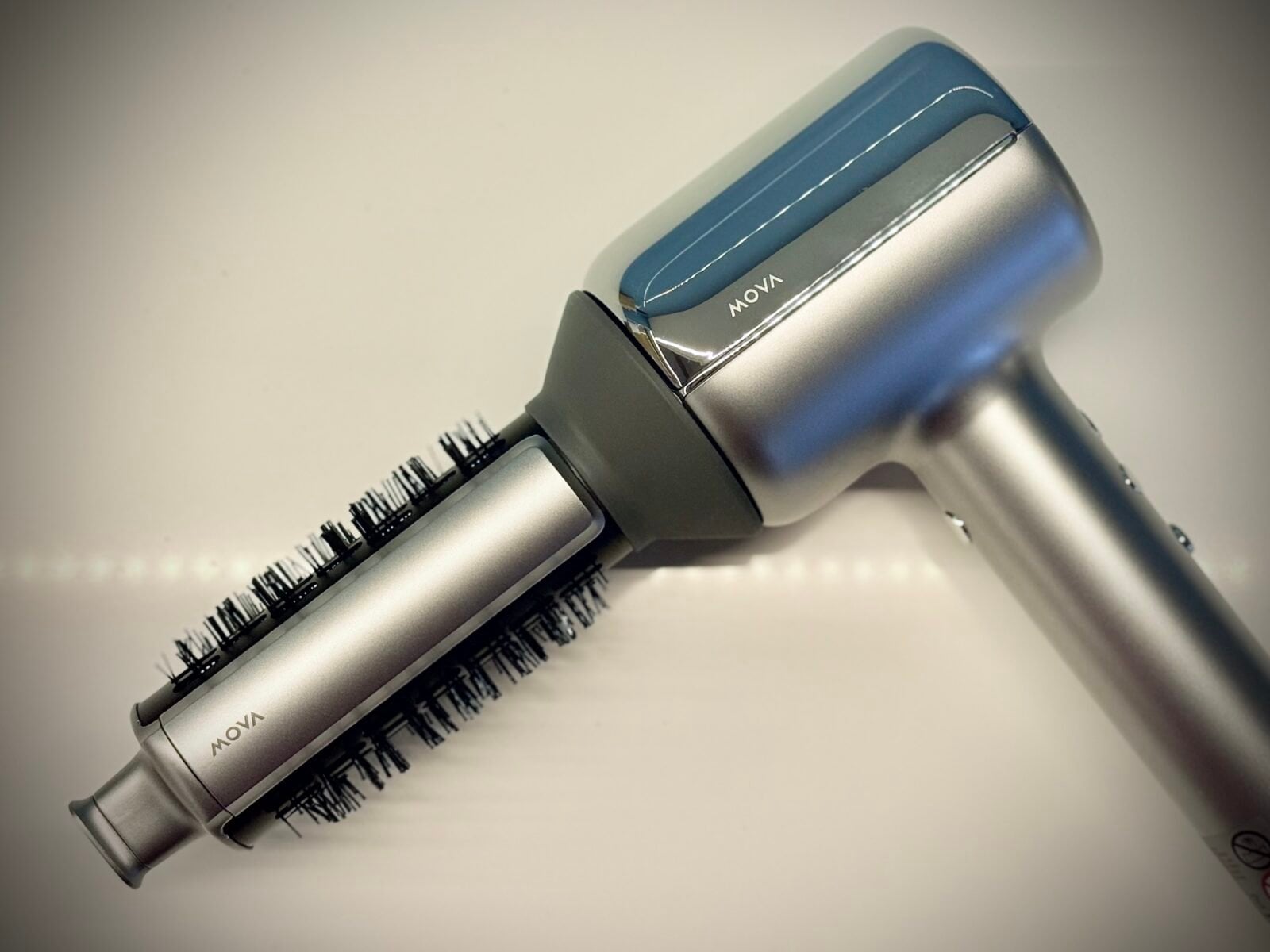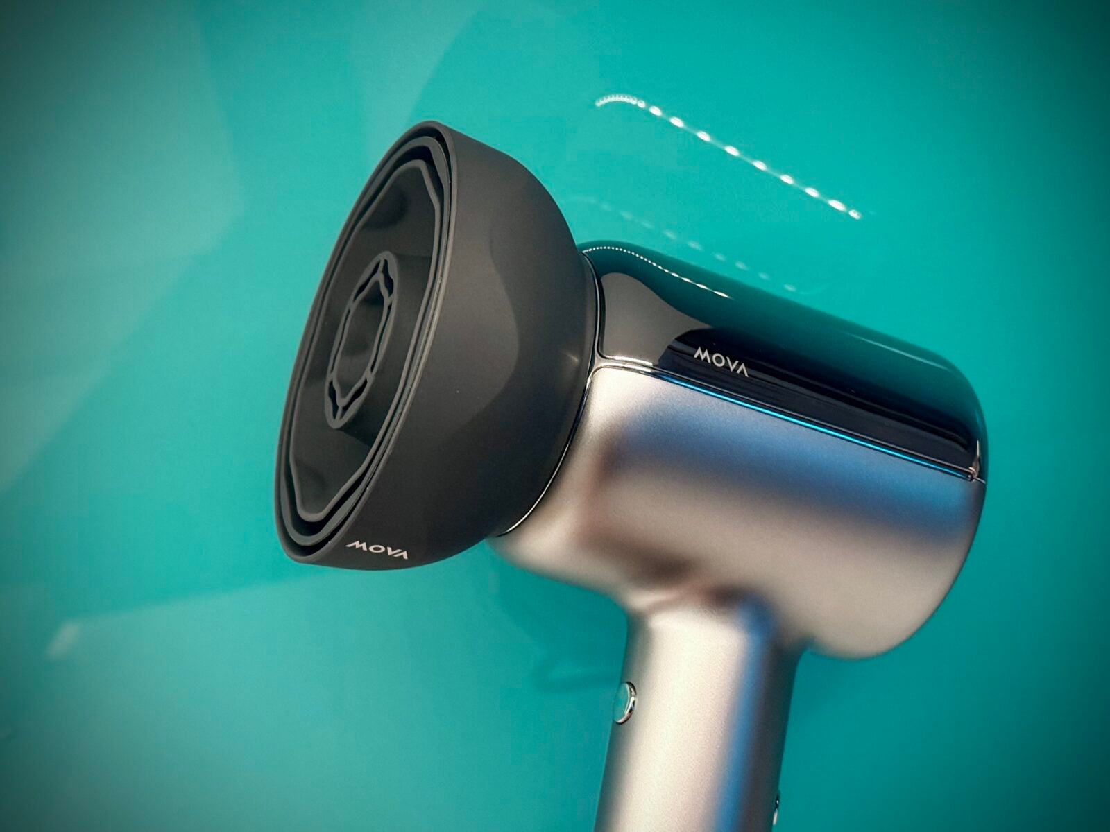 MOVA Shine 20 na tle zwykłych suszarek wyróżnia się przede wszystkim tym, czego nie widać z zewnątrz. Bezszczotkowy silnik wysokich obrotów przy mocy 1800 W pozwala uzyskać prędkość powietrza do 65 m/s, co przekłada się na bardzo konkretny, ale nie agresywny strumień. Nie trzeba od razu wchodzić na najwyższy bieg, żeby poczuć, że włosy naprawdę zaczynają schnąć.