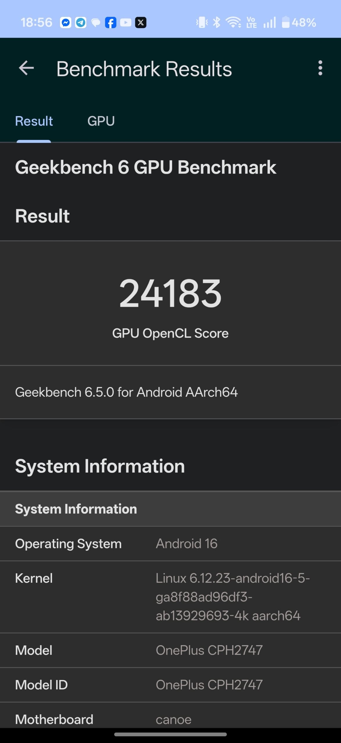 - Geekbench 6 GPU OpenCL: 24183 pkt