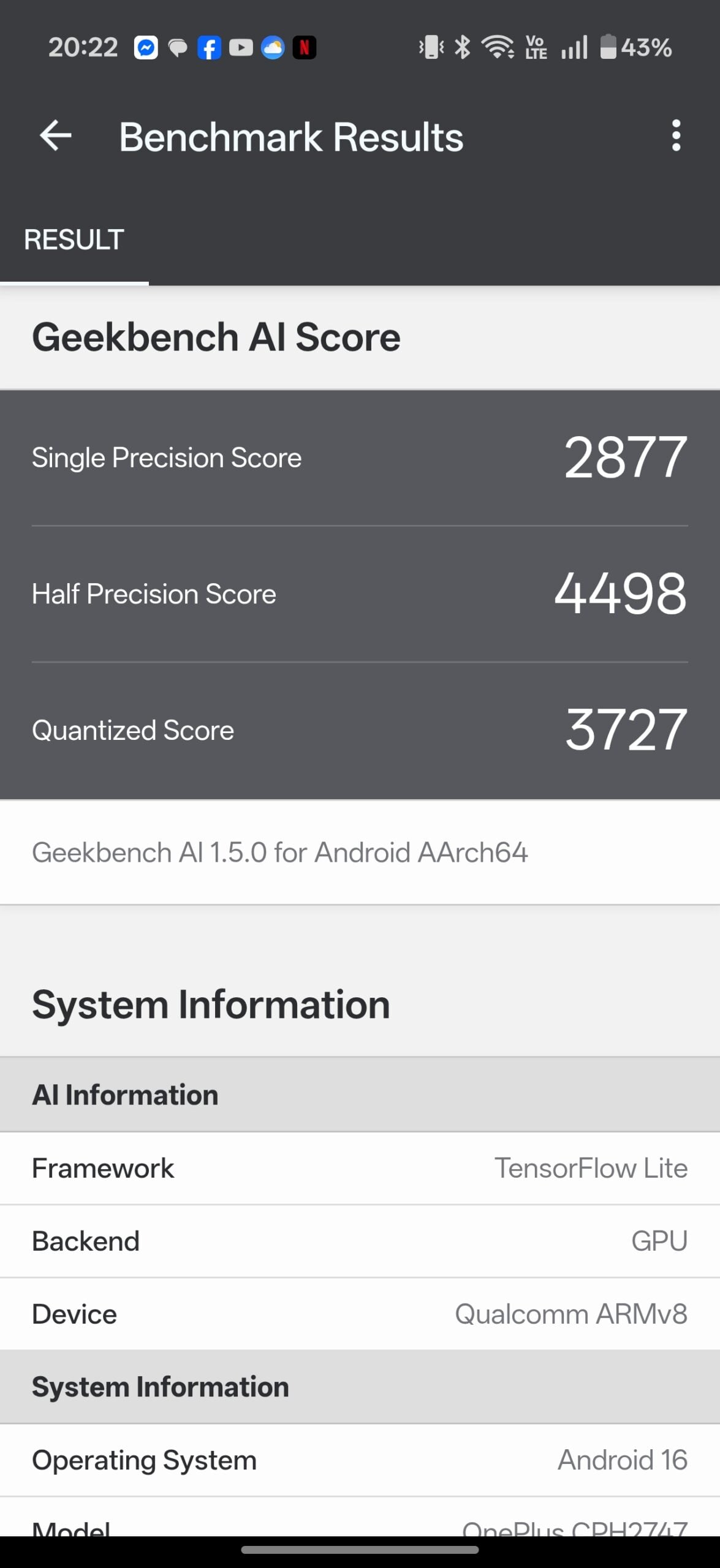 - Geekbench AI GPU: 2877 / 4498 / 3727 pkt