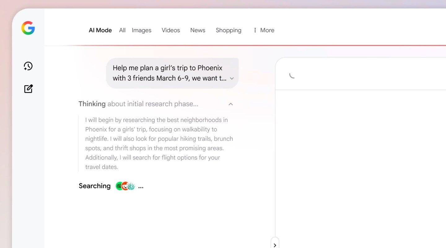 W najbliższej przyszłości gigant planuje rozszerzyć możliwości agentowe o rezerwację lotów i hoteli bezpośrednio w Trybie AI. Celem jest stworzenie interfejsu konwersacyjnego, w którym opiszesz, czego szukasz, porównasz rozkłady, ceny, zdjęcia pokoi i udogodnienia, a następnie szybko dokończysz rezerwację u wybranego partnera.