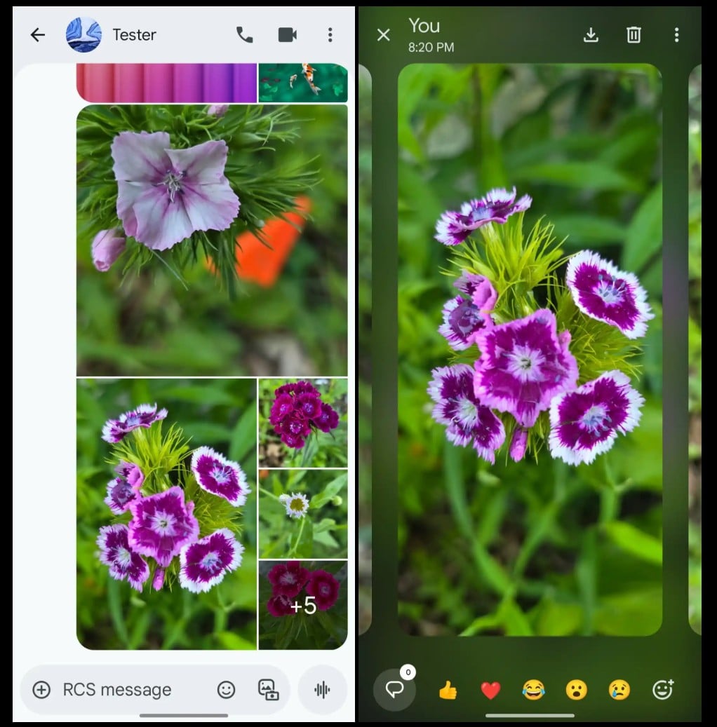 - Nowy widok zdjęć — zdjęcia wysłane w tym samym czasie są teraz grupowane w wątku. Przeglądarka zdjęć na pełnym ekranie została odświeżona – ma rozmyte tło, podgląd poprzedniego/następnego zdjęcia oraz nową dolną listwę do reakcji.