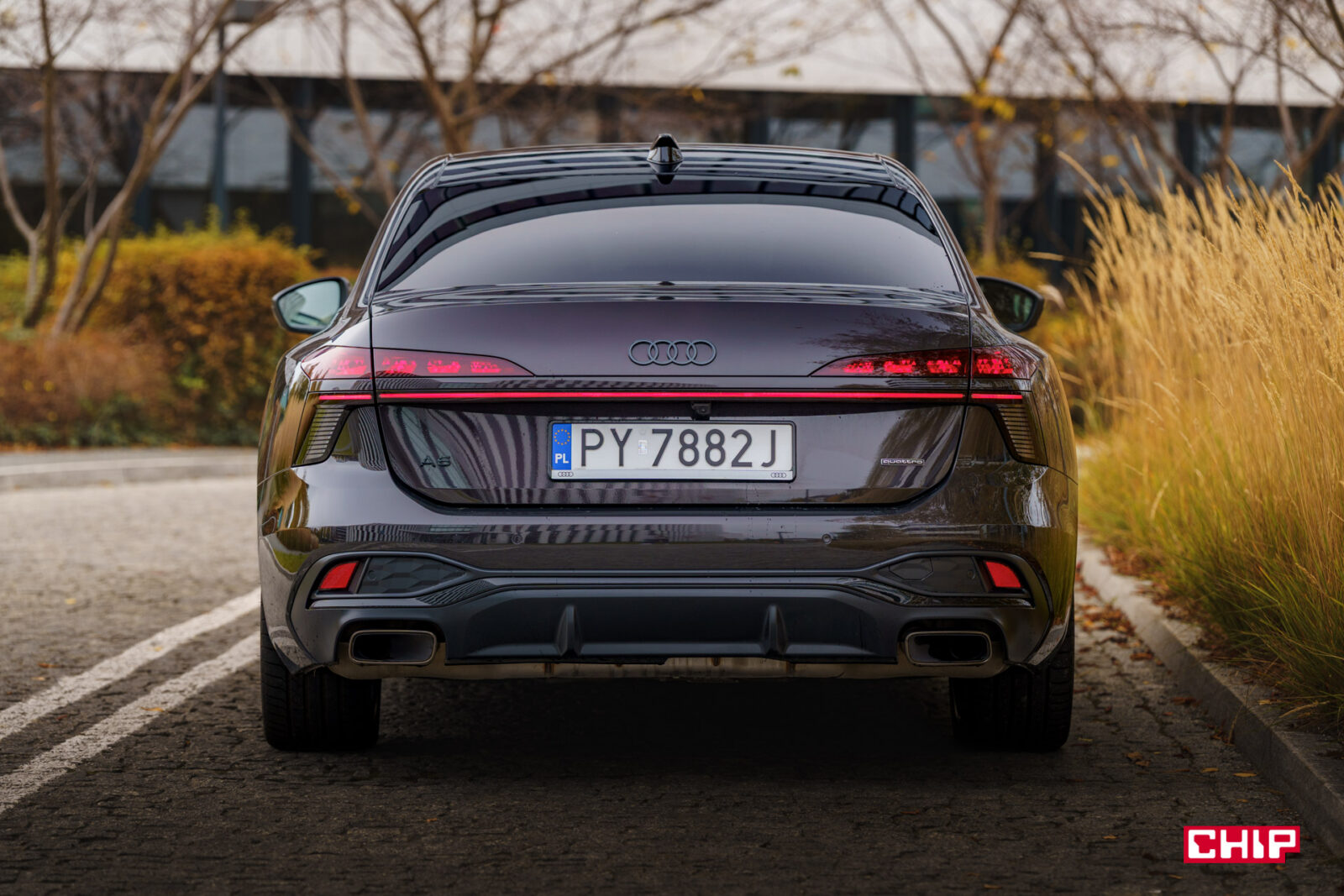 Częścią pakietu jest też ciemny chrom wokół końcówek wydechów, które nie są w tym przypadku atrapami. Tu duży plus dla Audi, bo najnowsze generacje aut mają prawdziwe, widoczne wydechy i stało się tak pod naporem klientów. Presja ma sens.