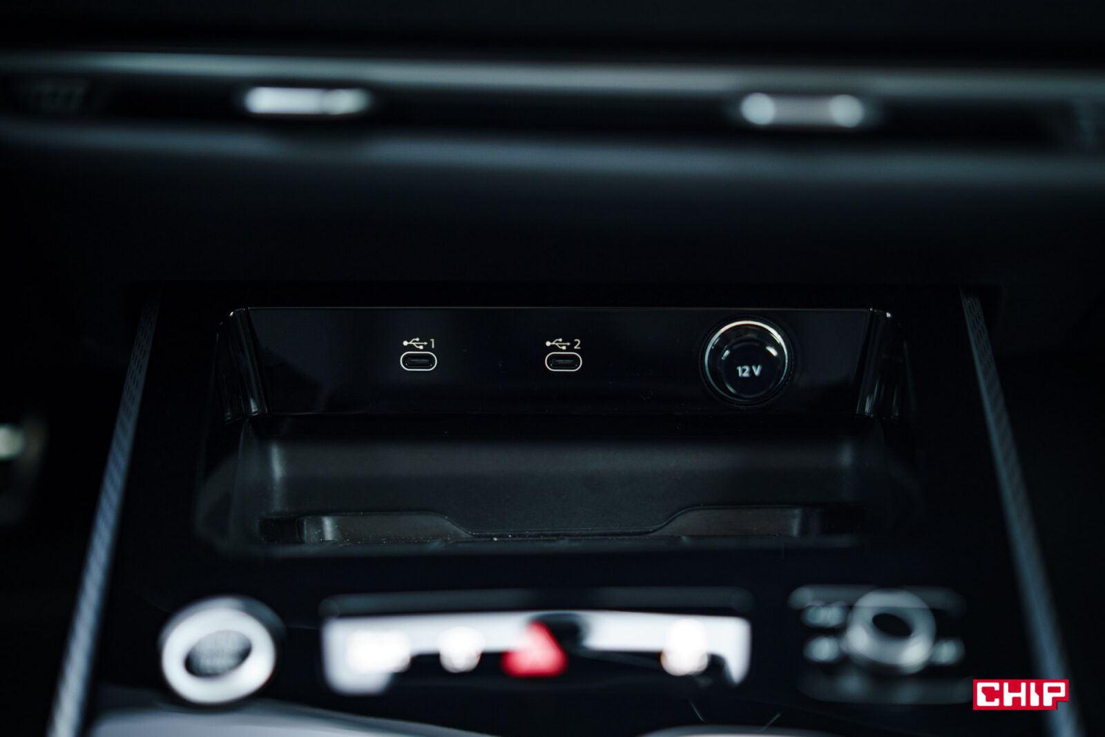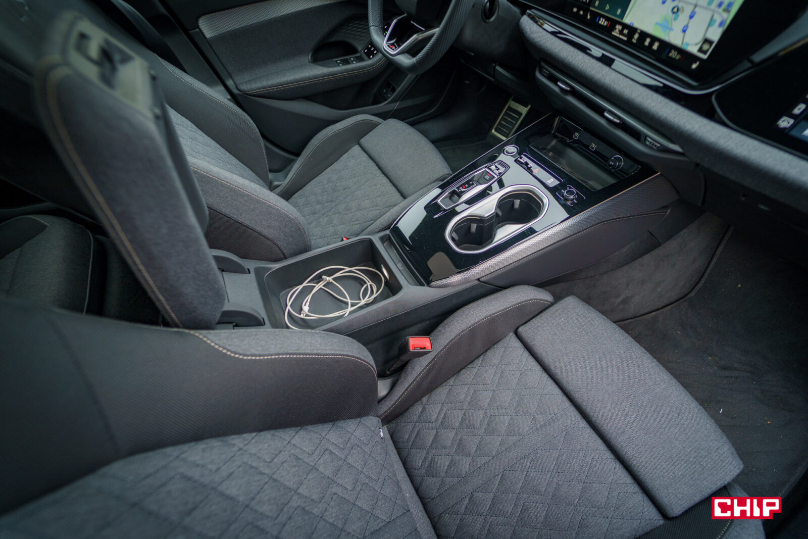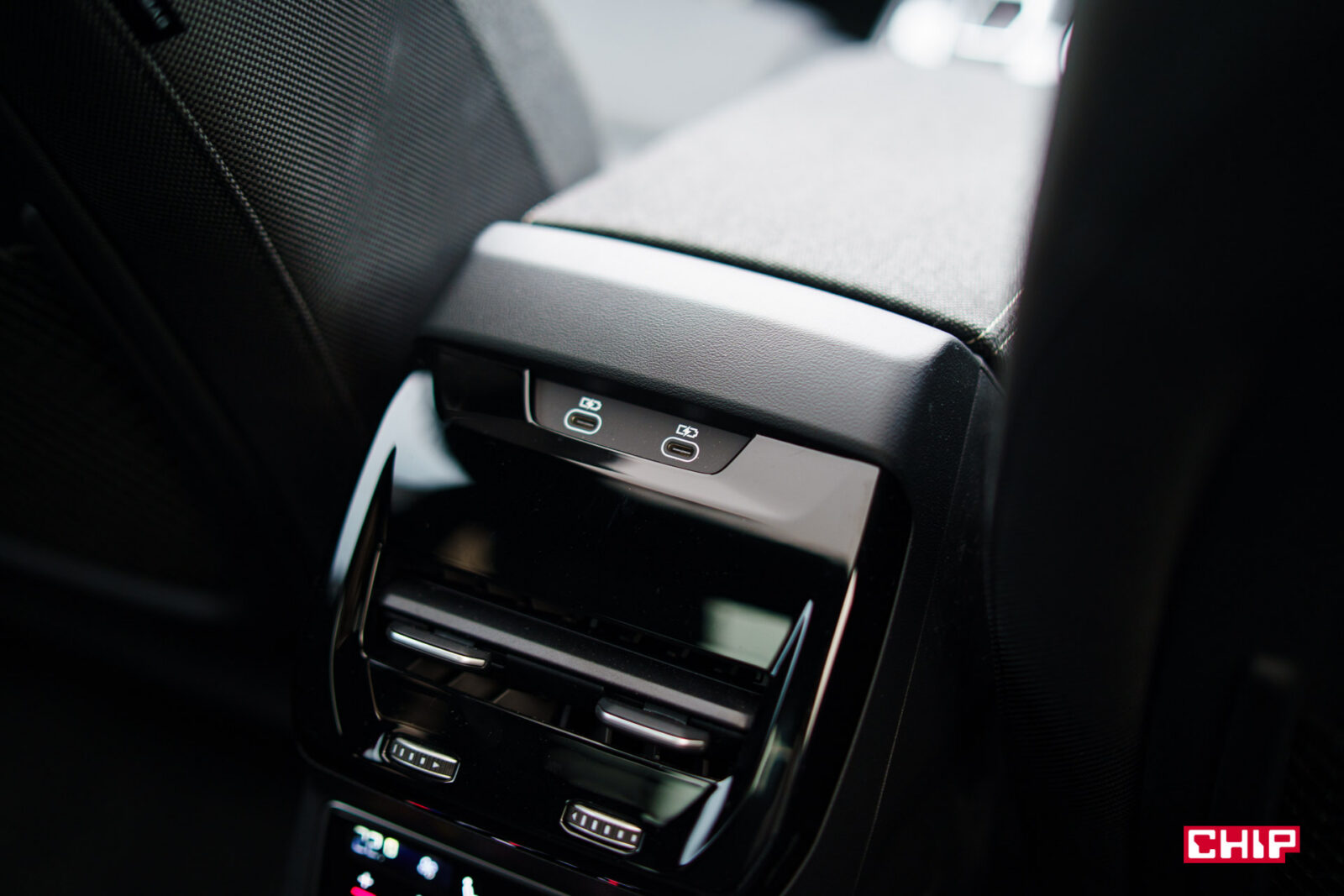 Podłokietnik jest bardzo szeroki, ale zdziwić może schowany w nim bardzo płytki schowek. Jest długi i szeroki, ale zmieścimy w nim niewiele rzeczy.