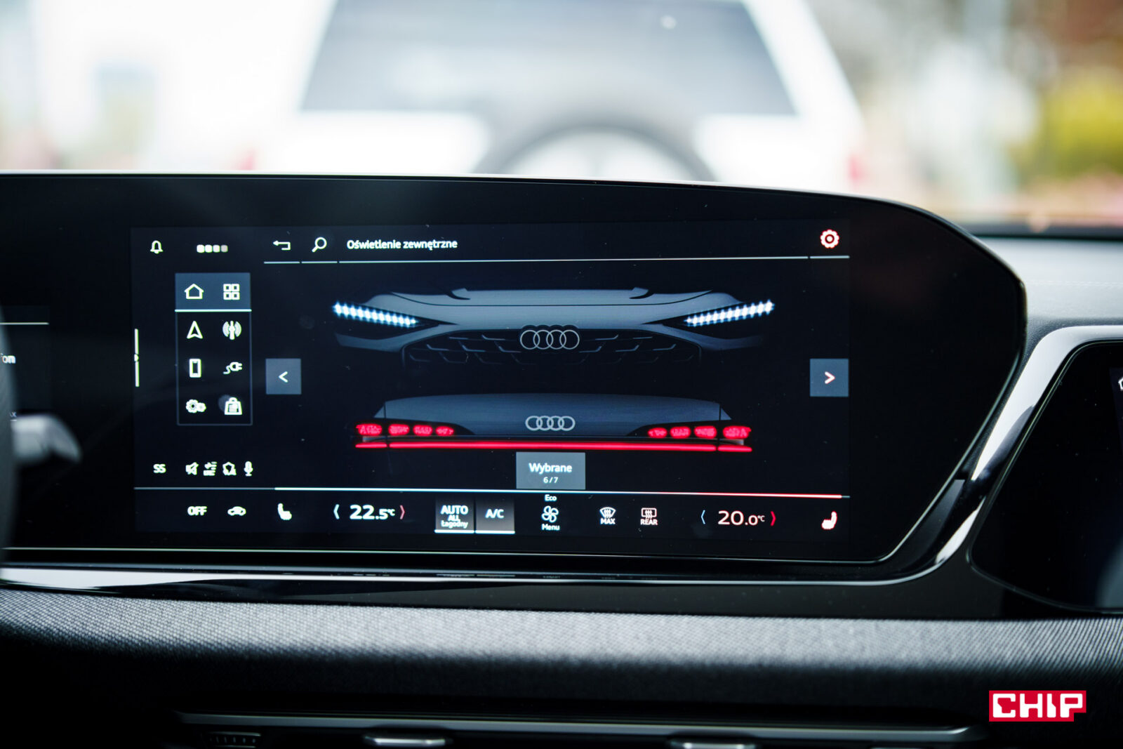 Ekran OLED w nowych modelach Audi to prawdziwa perełka. W Audi A6 Limousine ma on przekątną 14,5 cala, ale nie przytłacza swoimi rozmiarami ze względu na panoramiczne proporcje. Jakość obraz to klasa sama dla siebie. Perfekcyjna czerń, mocno nasycone kolory i genialny wygląd w nocy, kiedy elementy interfejsu zdają się dosłownie wisieć w powietrzu.