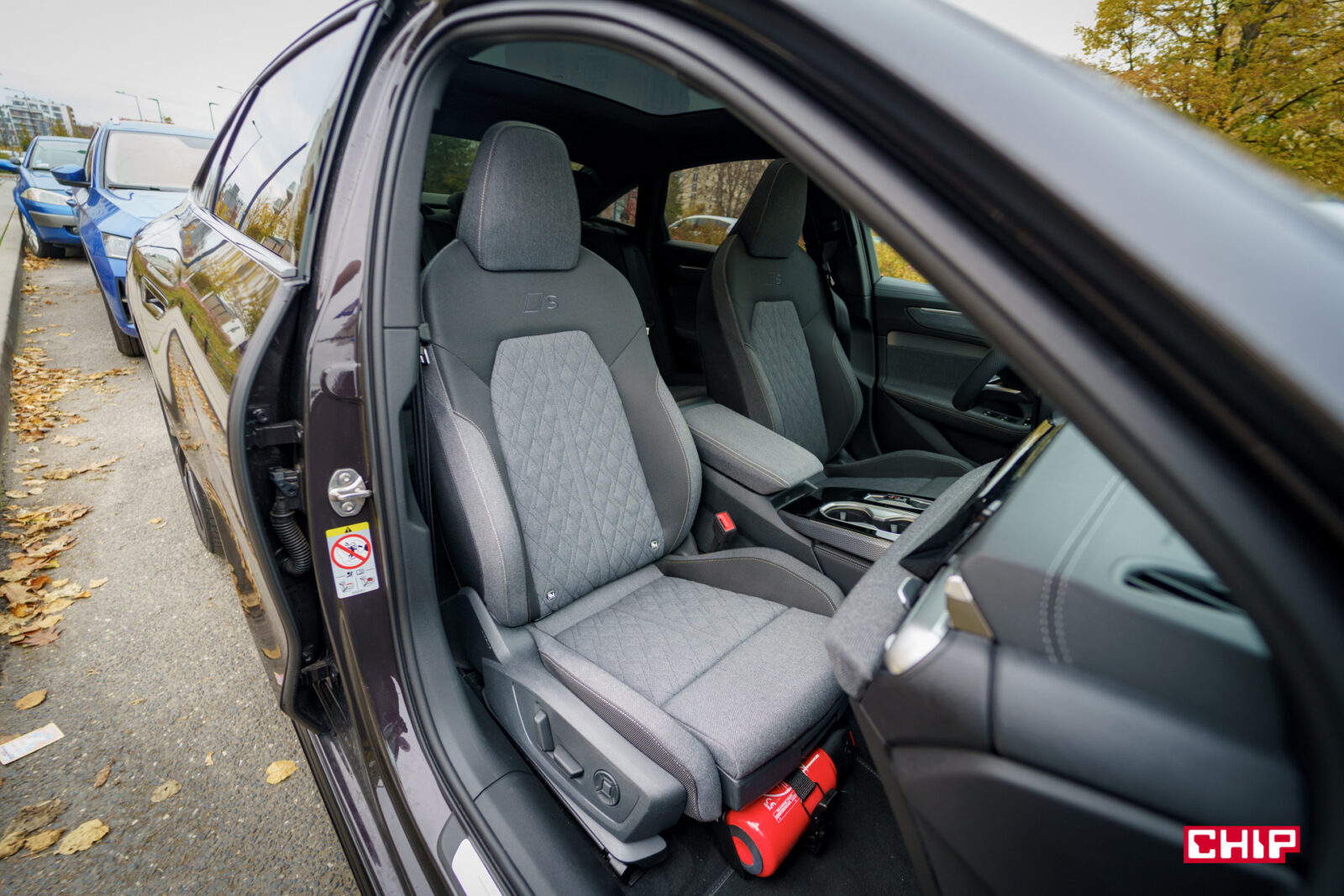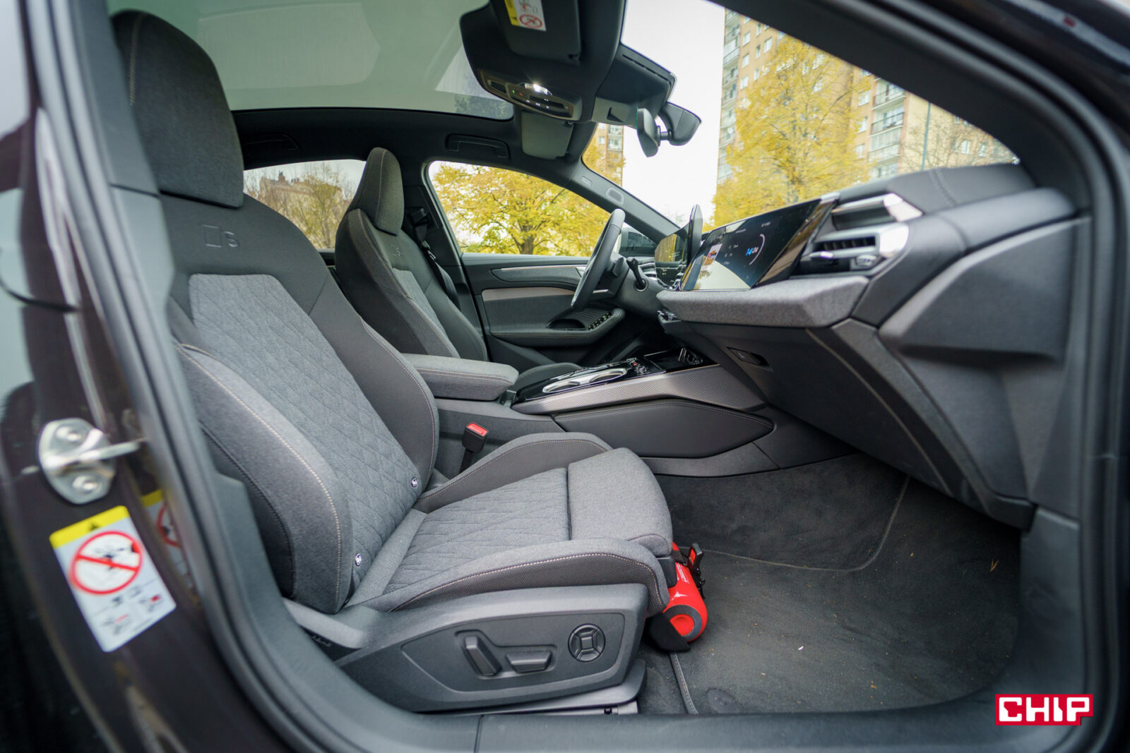 Wnętrze testowanego egzemplarza może mocno zaskoczyć, bo mamy tu podstawowe, materiałowe fotele pozbawione skórzanych elementów. Jak nie raz wspominaliśmy przy okazji testów – auta prasowe potrafią być przedziwnie skonfigurowane i to jeden z idealnych tego przykładów.