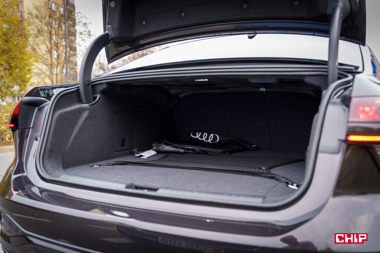 Co do mocy ładowania – nie mamy tutaj ładowania DC, wyłącznie AC o maksymalnej mocy 11 kW. Pozwoli to na naładowanie baterii w 2,5 godziny, natomiast jeżeli zdecydujecie się ładować auto przy użyciu zwykłego gniazdka, będziecie do tego potrzebować około 11 godzin. Tak naprawdę wystarczy podpiąć A6 do gniazdka po powrocie z pracy. Kiedy rano będziecie wyruszać z domu, bateria będzie w pełni naładowana.