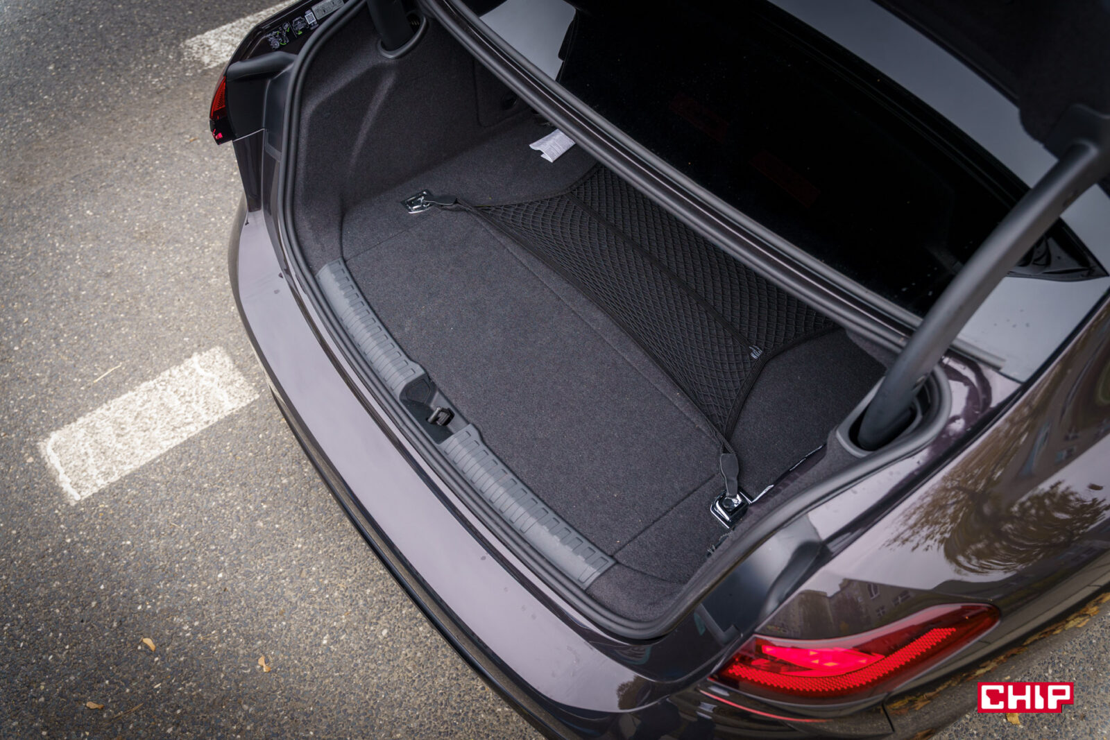 Bagażnik, jak to w limuzynowym sedanie, jest duży, ale dużych rzeczy w nim nie zmieścimy ze względu na mały otwór załadunkowy i dosyć niską przestrzeń. Dostępna pojemność to 404 litry, a do dyspozycji możemy mieć dodatkowe akcesoria, jak bardzo przydatna siatka. Hybryda plug-in zabiera sporo miejsca, bo w wariantach spalinowych pojemność bagażnika sięga 503 litrów.