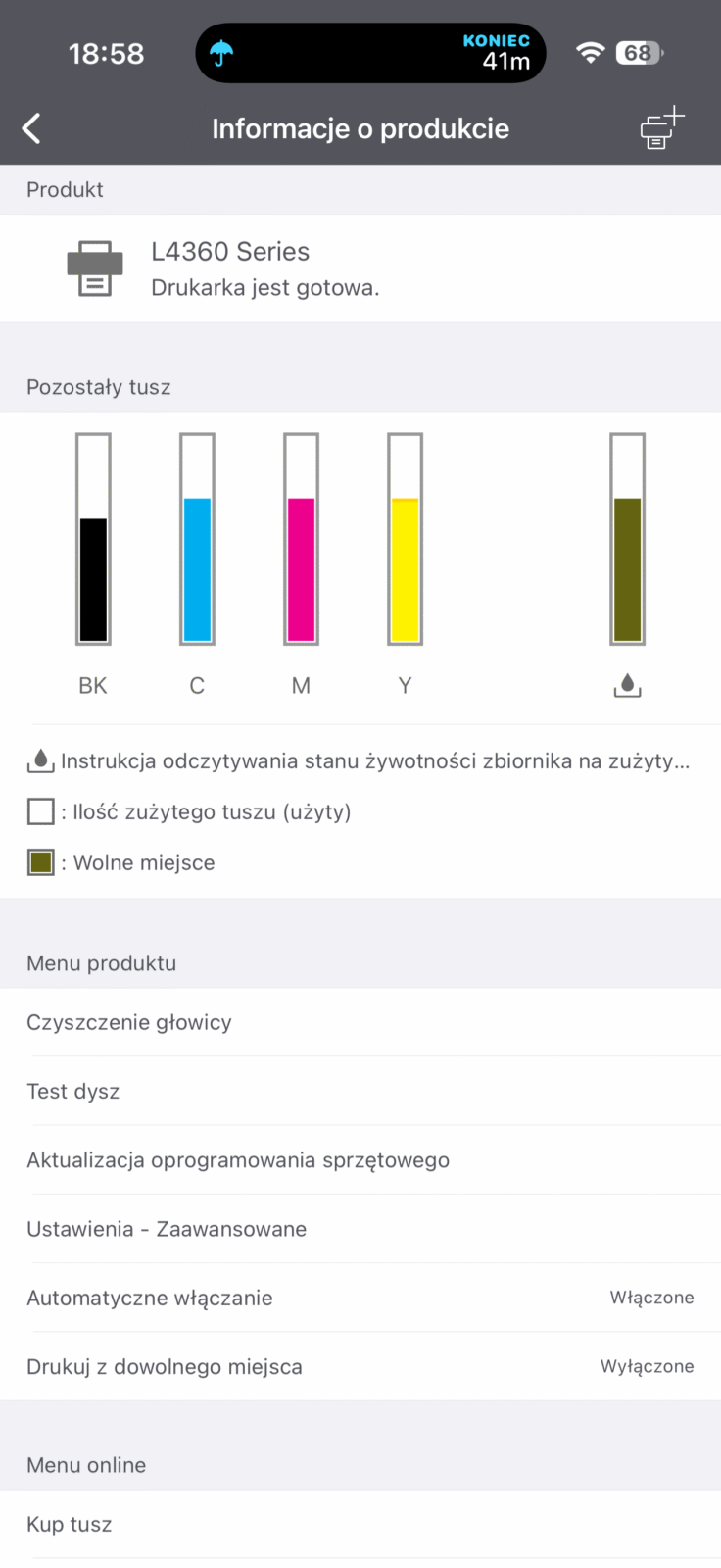 Aha, jeśli chodzi o macOS i iOS, to Epson EcoTank L4360 obsługuje AirPrint, więc drukowałem w ogóle bez instalacji czegokolwiek. Pełnię możliwości będziemy jednak w stanie wykorzystać dopiero po instalacji sterownika.