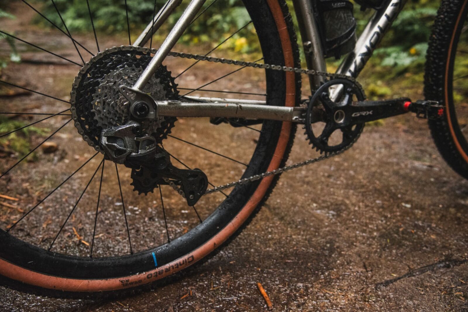 Cache Titanium został zaprojektowany z myślą o niemal nieograniczonej elastyczności. Rama jest kompatybilna z wszystkimi elektronicznymi i mechanicznymi napędami systemów 1x oraz 2x, pochodzącymi zarówno ze świata gravela, jak i MTB. Obejmuje to mocowanie przerzutki przedniej typu braze-on oraz haki kompatybilne ze standardami SRAM UDH i Full Mount. Szczegóły techniczne, takie jak sztyca o średnicy 31,6 mm, gwintowana mufa suportu BSA 68 mm, tylna oś 142×12 mm oraz mocowanie hamulca flat mount dla tarcz 140 lub 160 mm również świadczą o przemyślanym podejściu. Dodatkowe punkty montażowe na akcesoria, a w tym nowy uchwyt na górnej rurze, pozwalają przekształcić ten rower z maszyny do szybkich szutrowych wycieczek w solidnego towarzysza wielodniowych, obciążonych wypraw.
