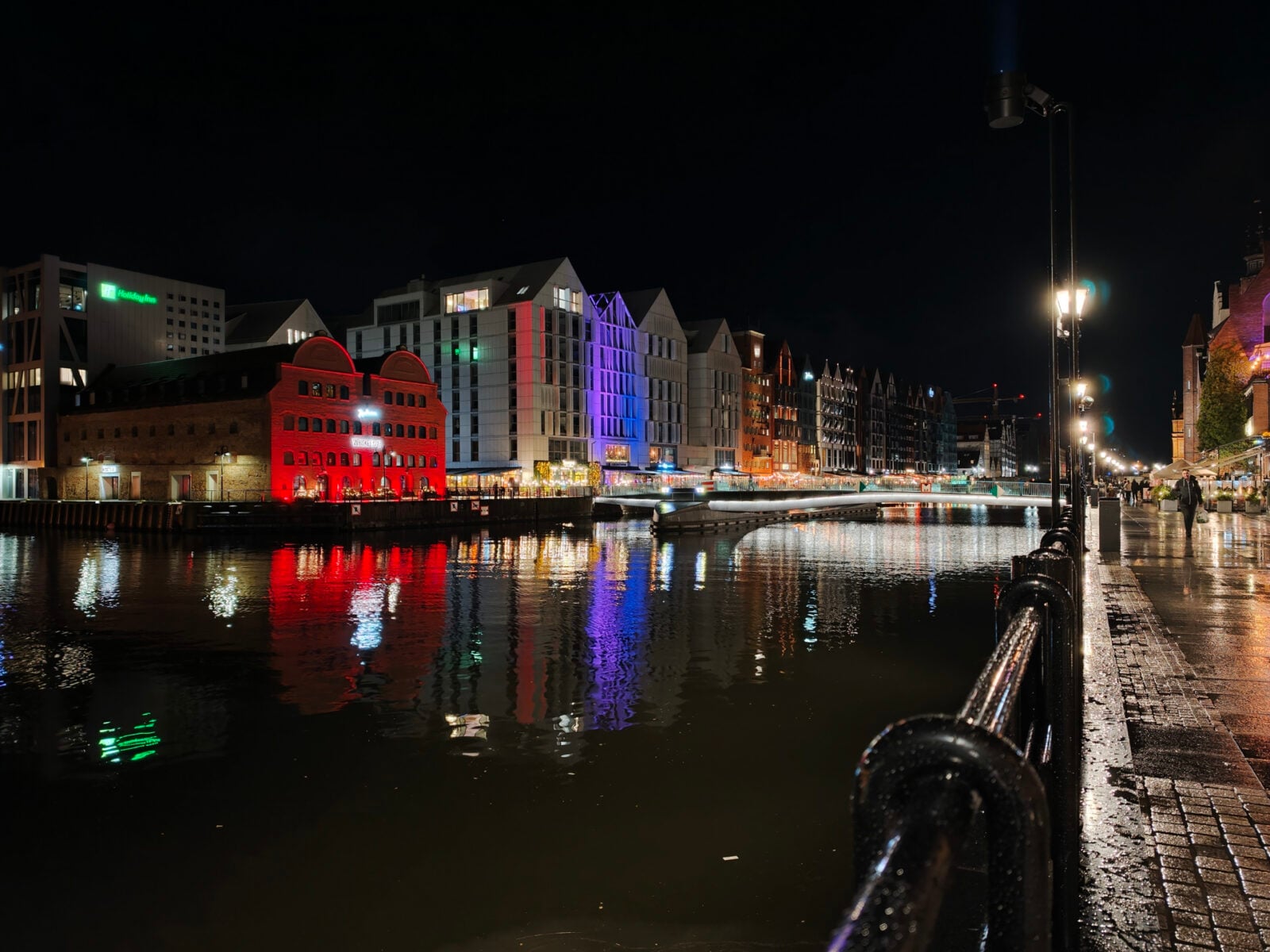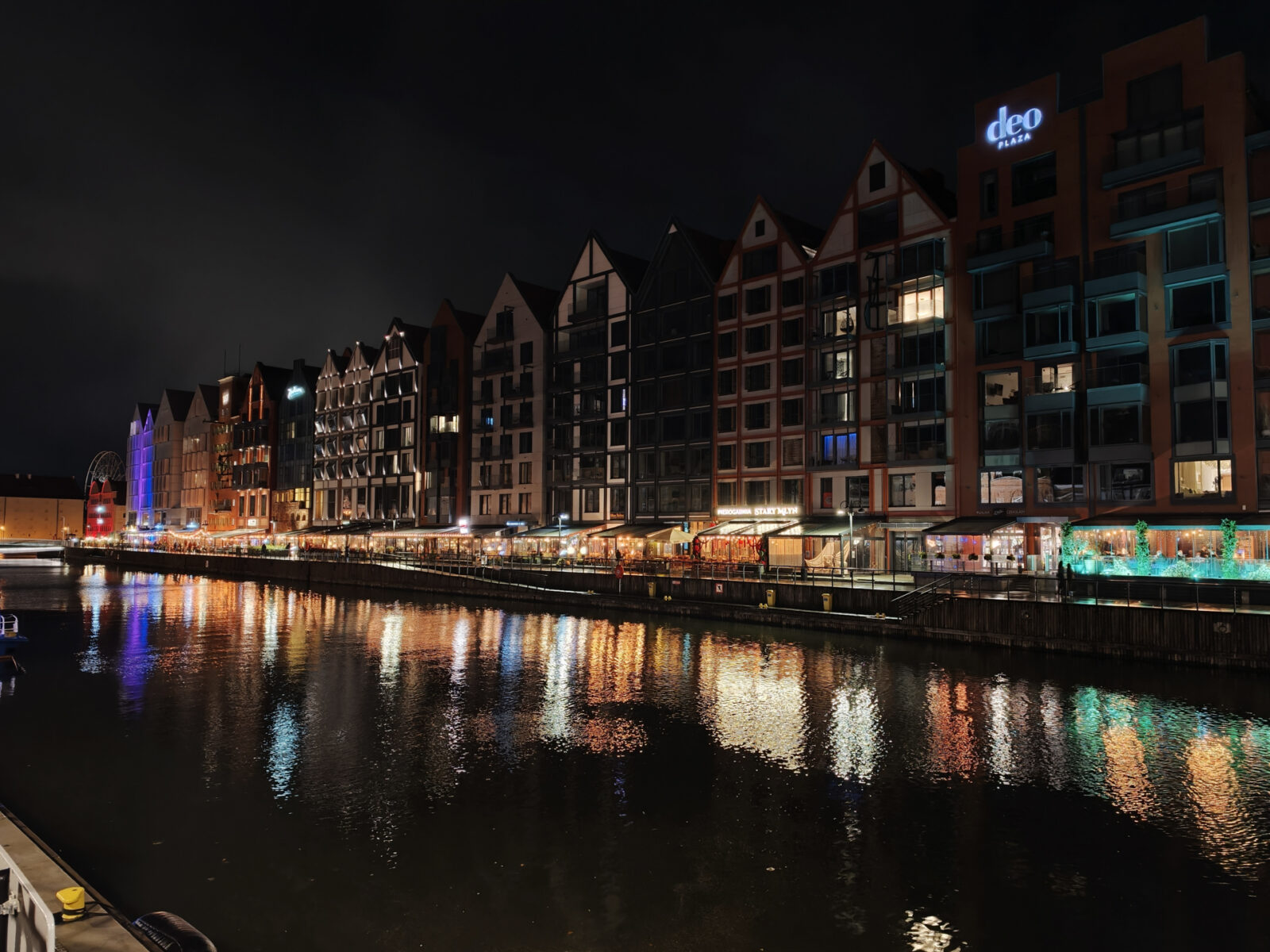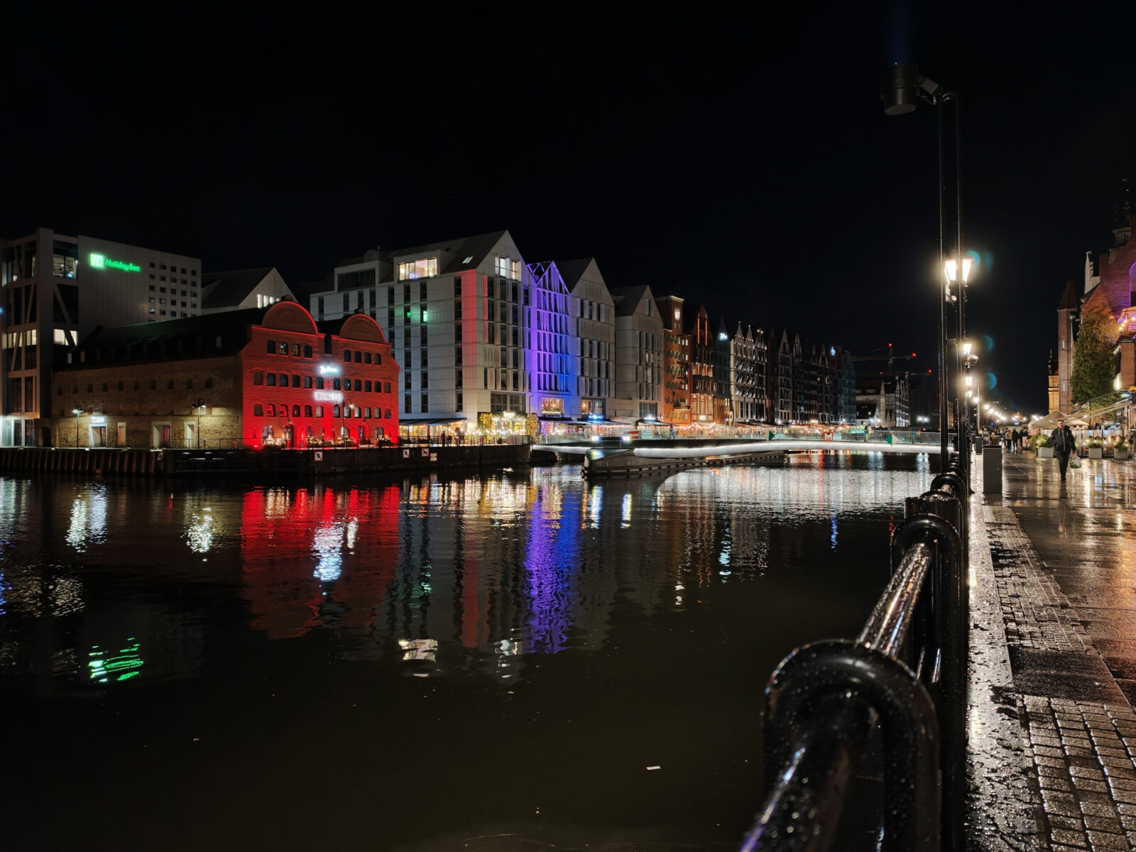 Zdjęcia nocne były pierwszymi, jakie wykonałem za pomocą Find X-a 9 Pro. To trochę paradoks, ale mieszkając w Warszawie nigdy nie mogę się zabrać za zdjęcia nocne. Pomimo tego, że przecież ładnie oświetlonych, kolorowych miejsc tu nie brakuje. Skorzystałem więc z okazji i krótkiego wyjazdu do Trójmiasta. Nieśmiało przyznam, że Gdańsk, to obok Paryża i Stambułu miasto, w którym zawsze najlepiej robi mi się zdjęcia. Pogoda do epickich kadrów dopisała. Lało, wiało i było zimno, co niekoniecznie było dobrą informacją dla mnie, za to bardzo dobrą dla potencjalnych efektów. Tutaj OPPO Find X9 Pro pokazał pazur.