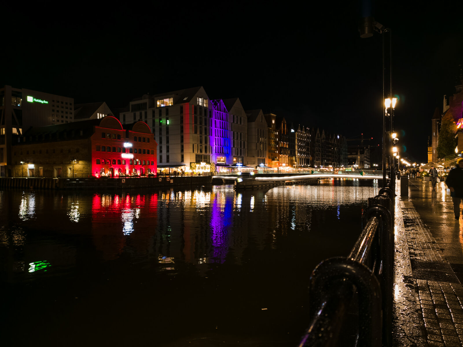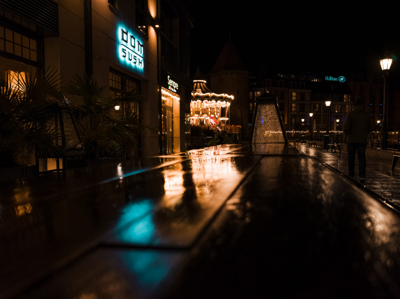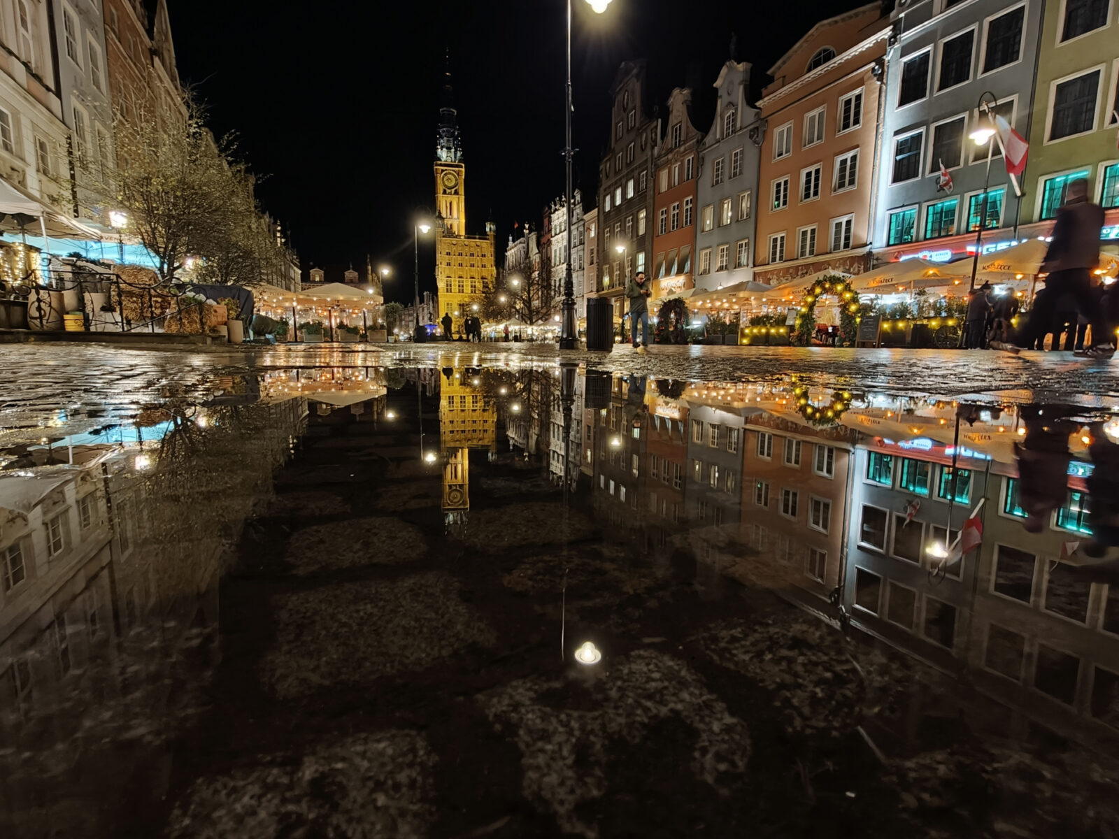 Zdjęcia nocne były pierwszymi, jakie wykonałem za pomocą Find X-a 9 Pro. To trochę paradoks, ale mieszkając w Warszawie nigdy nie mogę się zabrać za zdjęcia nocne. Pomimo tego, że przecież ładnie oświetlonych, kolorowych miejsc tu nie brakuje. Skorzystałem więc z okazji i krótkiego wyjazdu do Trójmiasta. Nieśmiało przyznam, że Gdańsk, to obok Paryża i Stambułu miasto, w którym zawsze najlepiej robi mi się zdjęcia. Pogoda do epickich kadrów dopisała. Lało, wiało i było zimno, co niekoniecznie było dobrą informacją dla mnie, za to bardzo dobrą dla potencjalnych efektów. Tutaj OPPO Find X9 Pro pokazał pazur.