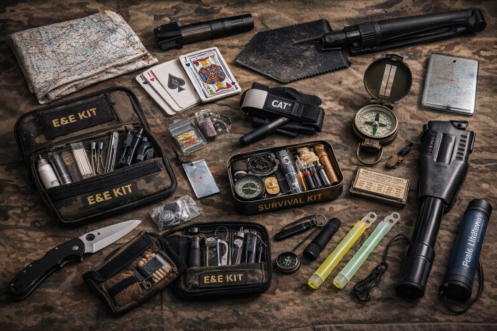 Współczesny żołnierz sił specjalnych rzadko rusza w teren bez zestawu E&E, co stanowi akronim od słów Escape & Evade. Są to niewielkie pakiety sprzętu przeznaczone do ucieczki i unikania pojmania: od miniaturowych filtrów do wody, przez drut do cięcia, niewielkie ostrza, po klucze do kajdanek i elementy do improwizowanej nawigacji. Firmy specjalizujące się w takim sprzęcie, jak Survival Metrics czy Combat Casuals, sprzedają gotowe zestawy, które ważą około pół kilograma i mieszczą się w jednej kieszeni, a mimo to zawierają kilkadziesiąt drobnych elementów.
