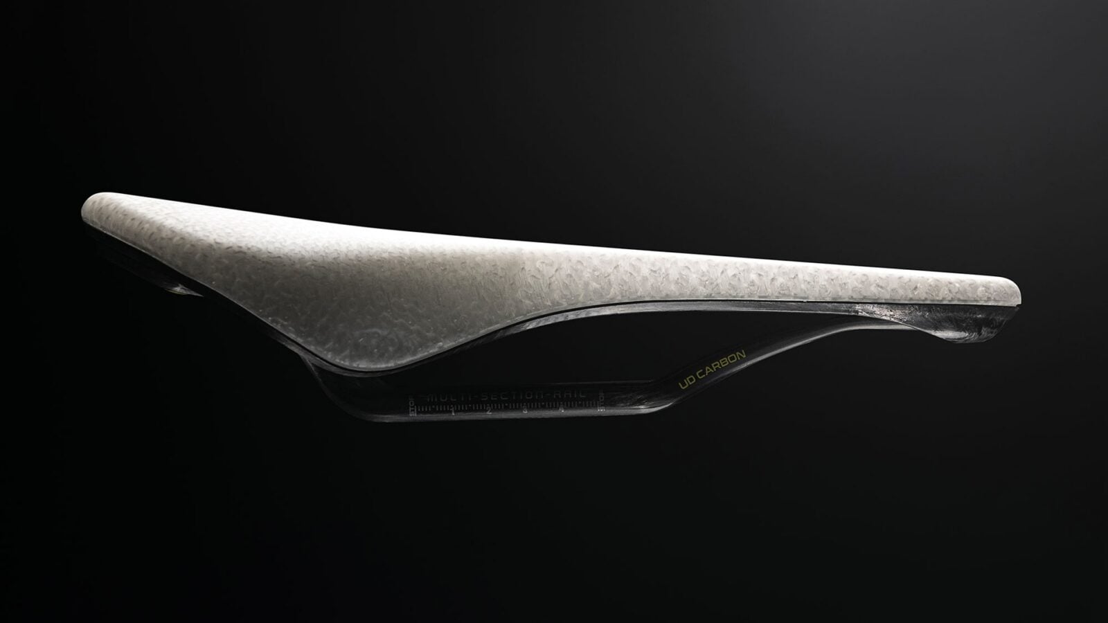 Pod jednolitą, perłowo-białą powierzchnią kryje się precyzyjnie zaprojektowane, drukowane wypełnienie. Konstrukcja dzieli się na trzy strefy o różnej gęstości. Najtwardszy materiał umieszczono w rejonie podparcia kości kulszowych, gdzie nacisk jest największy. Obszar pod tkankami miękkimi charakteryzuje się większą elastycznością, co pozwala na lepsze rozłożenie obciążenia. Nie zabrakło też centralnego kanału redukującego ucisk na najbardziej wrażliwe obszary krocza, co jest standardem w siodełkach wyższej klasy. Całość została oparta na pełnej skorupie z karbonu UD oraz szynach z tego samego materiału o owalnym przekroju. Przy wymiarach 260 mm długości i 142 mm szerokości, producent deklaruje wagę na poziomie 180 gramów, co plasuje je wśród jednych z najlżejszych propozycji na rynku.