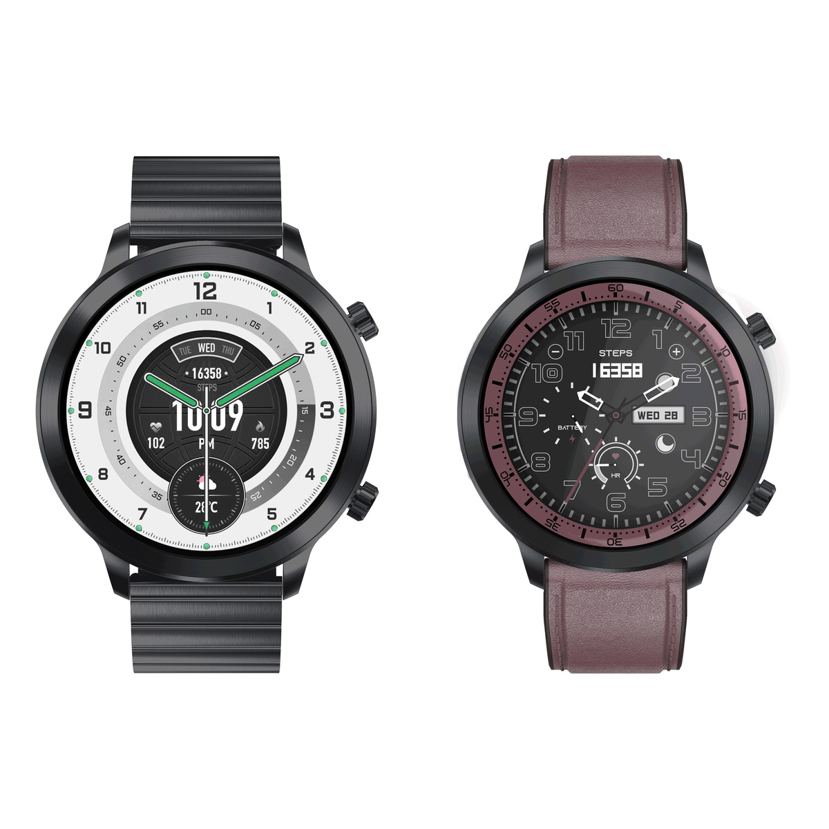 Smartwatch współpracuje z telefonami z systemem Android 6.0 i nowszymi oraz iOS 12+. Połączenie zapewnia podwójne Bluetooth 5.3, a do zarządzania służy aplikacja Bemi Fit. Urządzenie można dostać w trzech kombinacjach kolorystycznych: złotej z beżowym paskiem, srebrnej z zielonym i czarnej z brązowym. Na plus należy zaliczyć fakt, że w pudełku znajdują się dwa paski: sportowy z silikonu oraz bardziej elegancki, stalowy. W tej cenie to rzadkość, ponieważ zazwyczaj dodatkowe bransolety trzeba dokupować osobno. Bemi Zeno jest dostępny w sklepie producenta oraz w sieci Media Expert.
