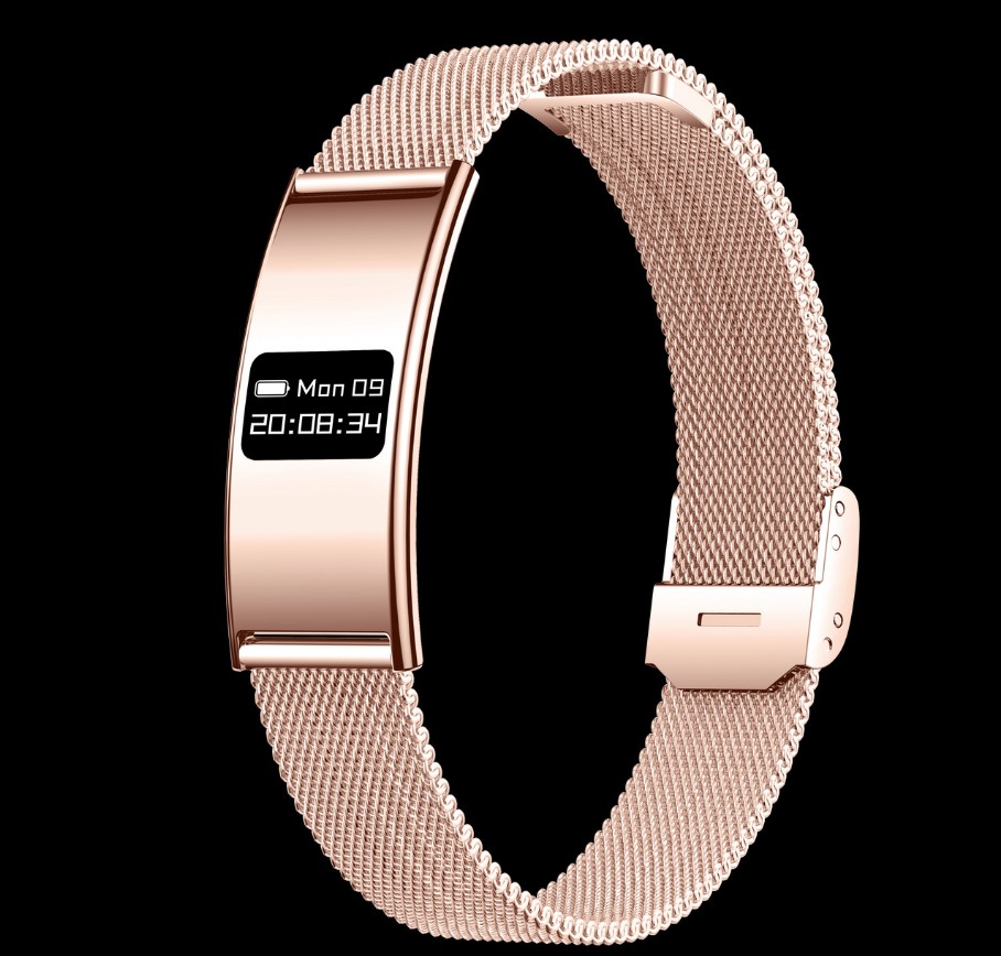 Obudowa wykonana ze stali nierdzewnej ma zaledwie 2,8 mm grubości, co według producenta czyni ją najcieńszą inteligentną opaską zdrowotną na świecie. Urządzenie ma około 4,6 cm długości i niecałe 2 cm szerokości, co sprawia, że na ręku prezentuje się wyjątkowo smukło. Mimo filigranowego wyglądu, nie jest to piórkowa waga – z metalową bransoletą zestaw waży około 41,2 g. Czuć więc, że mamy do czynienia z solidnym kawałkiem metalu, a nie tanim plastikiem. Rogbid oferuje też sporą personalizację: