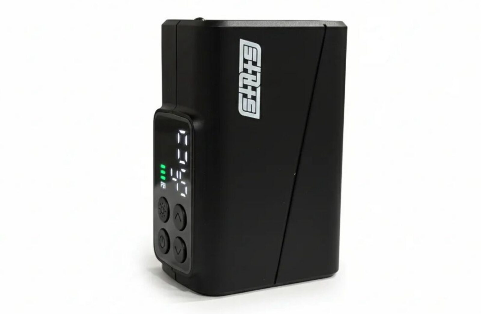 Na górze obudowy znajduje się niewielki dwurzędowy wyświetlacz cyfrowy, który pozwala ustawić docelowe ciśnienie i śledzić postęp pompowania, a urządzenie automatycznie odcina zasilanie po osiągnięciu zadanej wartości. Wężyk ma konstrukcję 2 w 1, obsługując zarówno wentyle Schradera, jak i Presta, przy czym State oznaczyło bezpośrednie końcówki kolorami: czerwony to Presta, szary to Schrader, co ma ograniczyć nerwowe szukanie właściwej końcówki na poboczu.