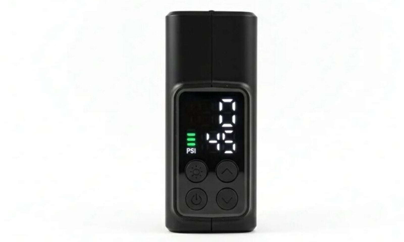 Electric Bike Inflator to miniaturowy kompresor o wymiarach około 83 × 58 × 38 mm i masie około 150 gramów, więc w praktyce jest bliżej masywnego licznika rowerowego niż klasycznej pompki ręcznej. W środku pracuje bezszczotkowy, 13-cylindrowy silnik, konstrukcyjnie zbliżony do jednostek znanych z małych dronów, napędzający układ powietrzny o deklarowanym ciśnieniu maksymalnym 150 psi, czyli nieco ponad 10 barów. Wydajność przepływu powietrza wynosi 10 litrów na minutę, co wystarcza dla typowych opon szosowych, gravelowych i miejskich, choć może nie być wystarczające dla efektownego pompowania baloniastych opon fatbike czy samochodowych.