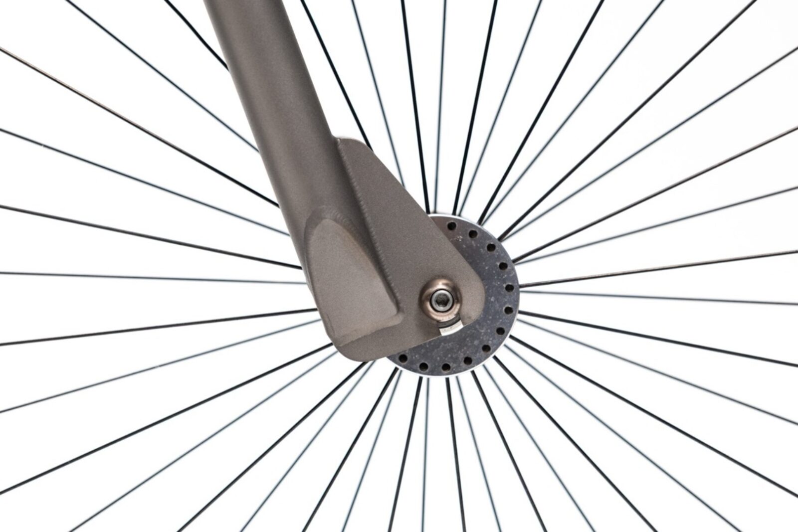 Tytanowa rama bez cieniowania, proste rury i surowe wykończenie tworzą estetykę bliską narzędziu, a nie designerskiemu gadżetowi. Jednocześnie to, co wygląda ascetycznie, wymaga dużej pewności warsztatowej. Rezygnacja z efektownych przekrojów rur nie wynika z braku umiejętności, ale z chęci nawiązania do prostoty pierwszych konstrukcji, przy jednoczesnym wykorzystaniu współczesnych metod obróbki i spawania tytanu. To rodzaj celowo ograniczonego luksusu: klient płaci za materiał i ręczną pracę, a nie za katalogową listę rozwiązań.