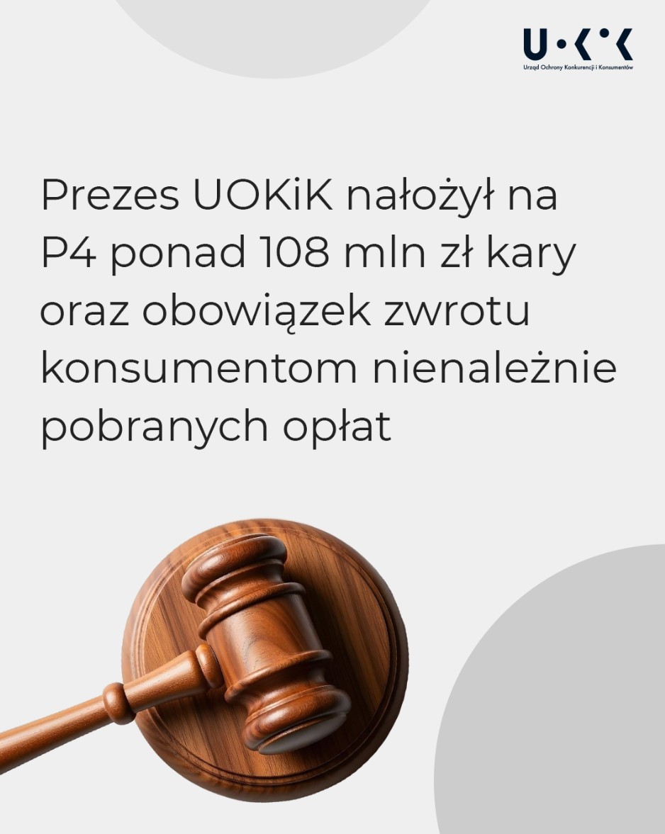 Urząd nałożył na spółkę P4, czyli operatora Play, karę w wysokości 108 573 207 zł. Powodem jest kontrowersyjny system rabatowy, który z założenia miał promować nowoczesne formy rozliczeń, ale w rzeczywistości często działał na niekorzyść klienta. Osoby, które spóźniły się z opłaceniem faktury, nie tylko traciły zniżkę, ale w kolejnym cyklu rozliczeniowym musiały uiścić abonament w pełnej, wyższej kwocie.