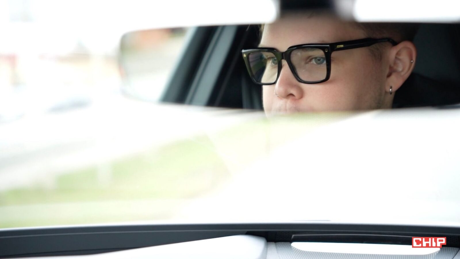 W nocy obraz jest bardzo jasny, co samo w sobie jest plusem, ale rośnie wrażliwość na oślepianie przez nadjeżdżające auta czy mocne światła w lusterkach. Za to ekrany w kabinie — zegary, centralny wyświetlacz, nawigacja — są w tych okularach najłatwiejsze do czytania. Bez przygaszenia, bez niespodzianek. Chciałbym też zaznaczyć, że w mojej bazowej parze okularów, które robiłem prywatnie blisko dwa lata temu, mam soczewki Vision Express Blue Cut z filtrem światła niebieskiego, który ma ograniczać wpływ światła emitowanego przez ekrany. To ważne dla kogoś, kto spędza przy wyświetlaczach większość dnia (dlatego właśnie się na nie zdecydowałem) ale za kierownicą to dopiero punkt startowy, a nie specjalistyczne rozwiązanie dla kierowcy.