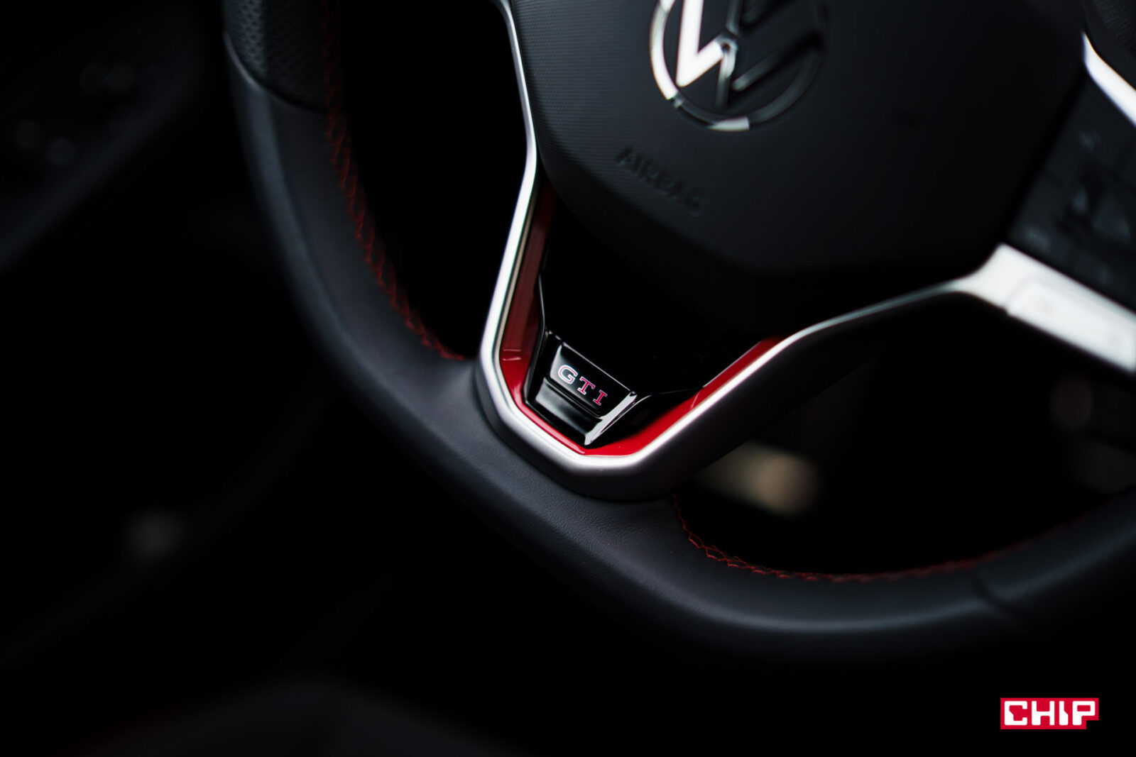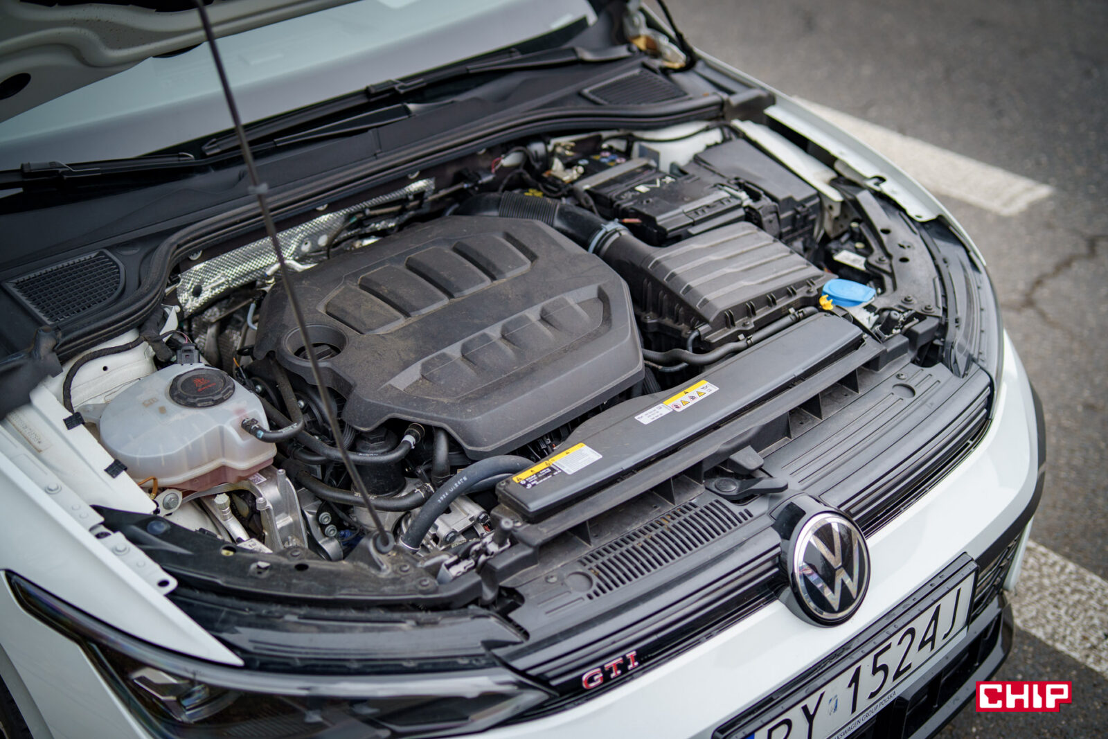 Pod maską znajdziemy czwartą generację silnika EA888 – evo4. Jest to turbodoładowana, 4-cylindrowa jednostka o pojemności 2.0l, maksymalnej mocy 300 KM i 400 Nm momentu obrotowego (2 000 – 5 200 obr./min), pozwalająca na przyspieszenie 0-100 km/h w 5,6 sekundy. Rozwiniecie tym maksymalnie 267 km/h. Silnik współpracuje z dwusprzęgłowym, 7-biegowym automatem DSG i….. napędem FWD. Niestety, Golf GTI jest dostępny wyłącznie z napędem na przód. Nie zmienia to jednak faktu, że jazda tym modelem potrafi sprawić wiele frajdy. Mamy dynamikę, mamy świetnie zestrojone zawieszenie, mamy progresywny układ kierowniczy, który będzie reagował odpowiednio do trybu jazdy i prędkości z jaką się poruszamy.