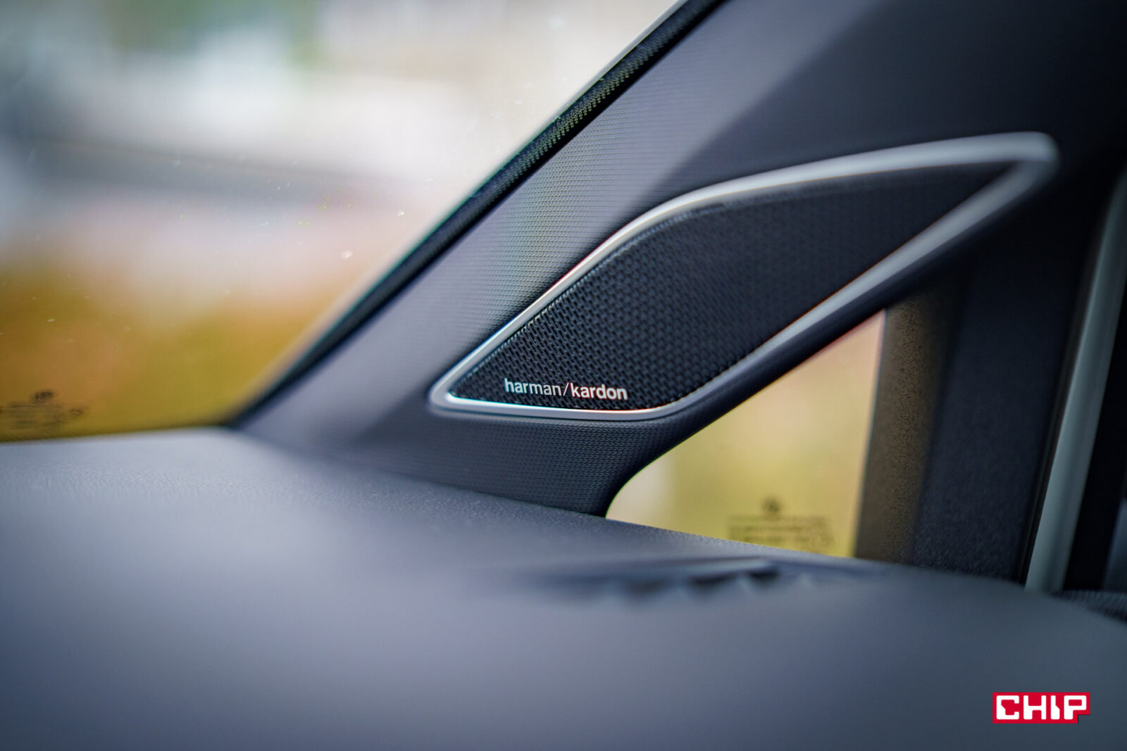 Nagłośnienie Harman/Kardon zaskakuje przestrzennością. O ile oczywiście tego chcemy, bo za pomocą suwaków możemy dosłownie otoczyć się dźwiękiem, który będzie dochodzić do nas z każdego zakątka auta lub przenieść go bardziej do przodu. Dużo dynamicznego, nieprzesadzonego basu, sporo szczegółów, nagłośnienie to mocny punkt Golfa GTI Clubsport.