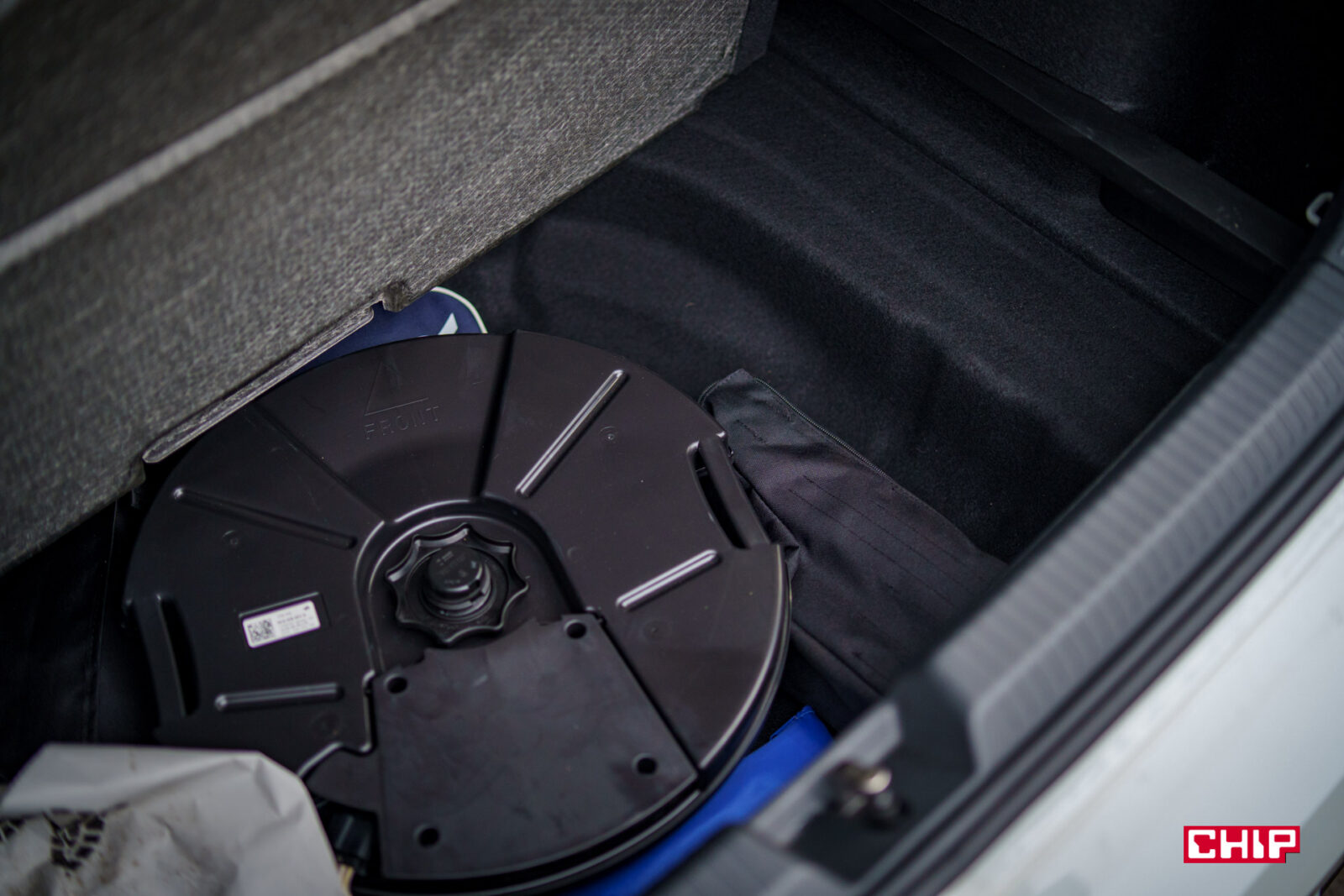 Skromnie jest też w bagażniku, który ma pojemność 374 litry i 1 230 litrów po złożeniu tylnej kanapy. Podłoga ma dwa poziomy, możemy ją podnieść lub opuścić. Nie ma tu hybrydy, więc bagażnik jest dosyć głeboki, ma regularne kształty i poza uchwytami na zakupy nie znajdziemy tu żadnych dodatków.