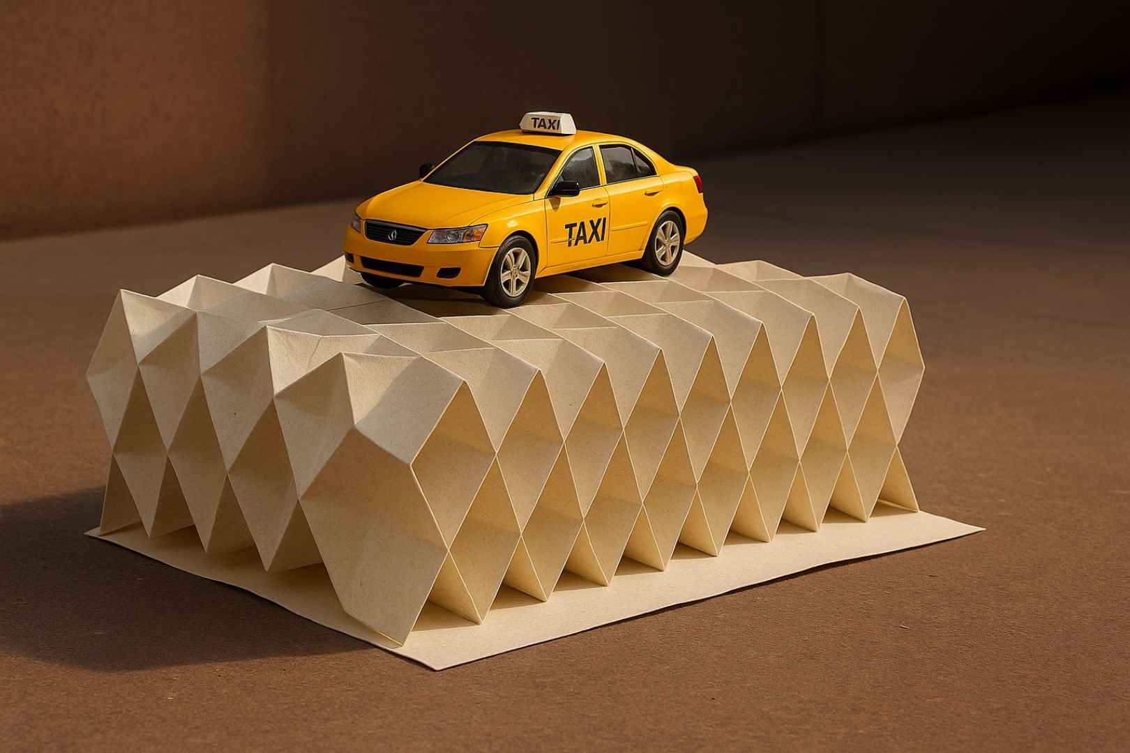 Inspiracją były doniesienia o klęskach żywiołowych, takich jak pożary czy huragany. Miles zaczął się zastanawiać, czy za pomocą papieru można stworzyć coś więcej niż ozdobę, bo na przykład tymczasowe, lekkie i wytrzymałe schronienie. Skupiło się na klasycznej technice zwanej złożeniem Miura-ori, opracowanej przez japońskiego astrofizyka Kōryō Miurę. To wzór równoległoboków, który pozwala na płaskie złożenie dużej powierzchni i ewidentnie nie jest to przypadkowy wzór znaleziony w książce o origami. To geometryczna struktura opracowana z myślą o jak najbardziej efektywnym składaniu dużych powierzchni do niewielkich rozmiarów. W świecie inżynierii ten motyw pojawiał się już wcześniej: testowano go między innymi w rozkładanych panelach słonecznych, elementach architektury tymczasowej czy lekkich, składanych konstrukcjach nośnych.