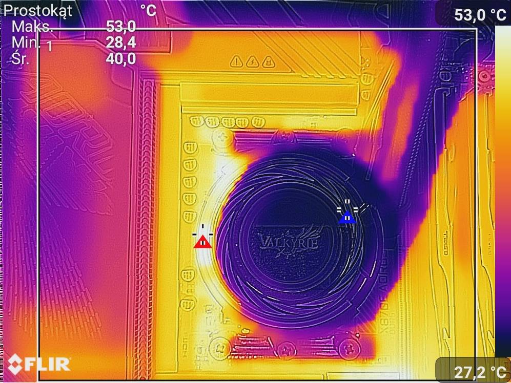 Sekcja zachowuje się zgodnie z oczekiwaniem – jest bardzo chłodna. Bez problemów możecie mocno podkręcać każdy procesor dostępny na platformę AM5.