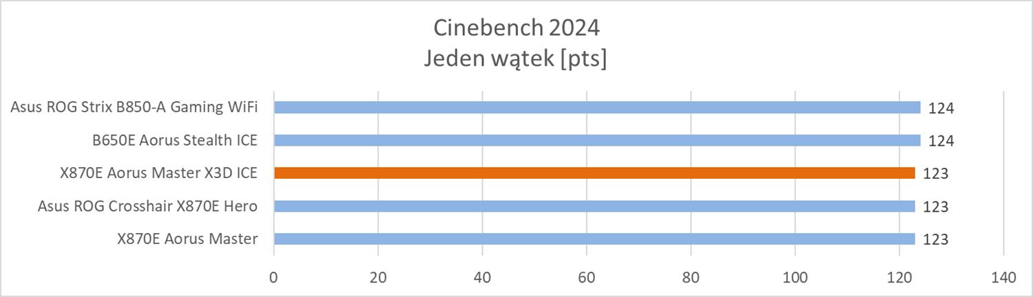 Cinebench to popularny benchmark bazujący na Maxon Cinema 4D. Pozwala on na dobrą ocenę wydajności procesorów i często pojawia się w przeciekach. W testach wykorzystałem wersję 2024 oraz testy jedno i wielowątkowe.