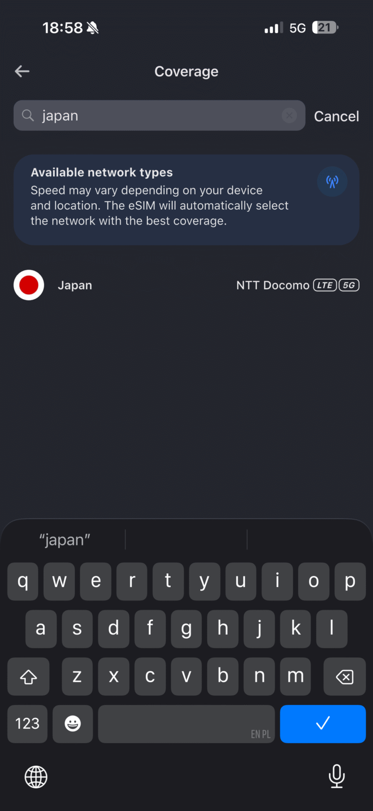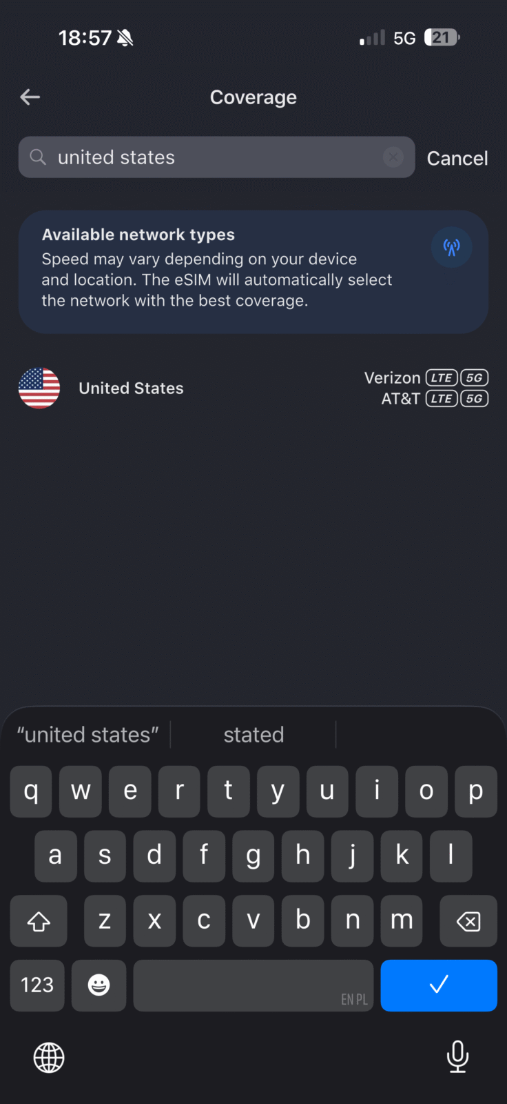 Scenariusz był powtarzalny. Przed pierwszym wylotem zainstalowałem eSIM, jeszcze w Polsce, i wybrałem wspomniany globalny pakiet. Samolot startuje, tryb samolotowy, klasyka. Lądowanie, wyłączam tryb samolotowy, telefon po chwili loguje się do lokalnej sieci i… to tyle. W San Diego jeszcze na płycie lotniska miałem już działające mapy, Ubera i komunikatory, bez szukania kiosku z kartą czy polowania na lotniskowe Wi-Fi z hasłem na wydruku przy automatach.