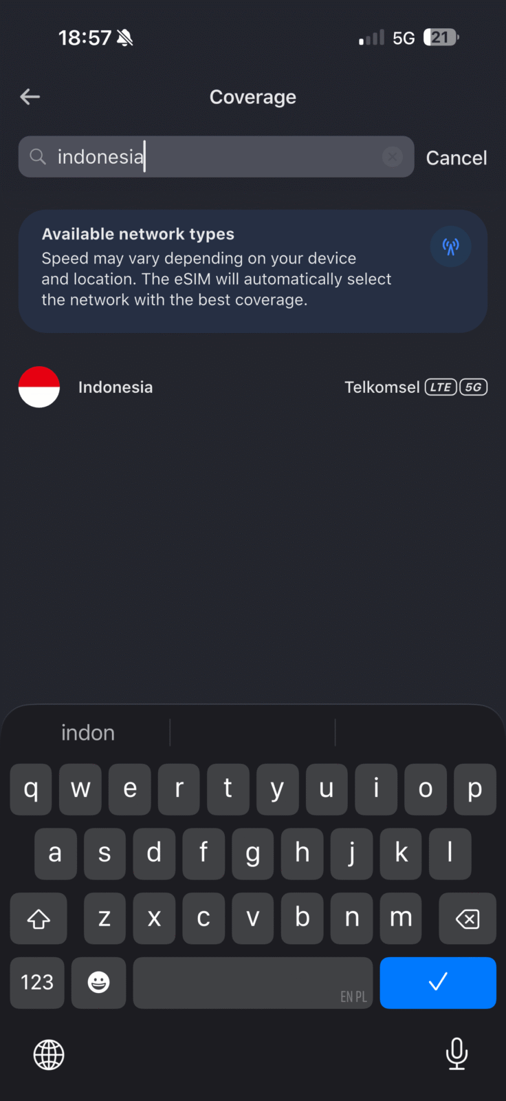 Najbardziej „egzotycznym” testem było Bali. Po przylocie do Denpasar sytuacja była dokładnie taka sama. Telefon złapał lokalną sieć, Yesim w tle dogadał się z operatorem i dane po prostu ruszyły. Nie musiałem bawić się w QR-kody po odprawie, ani rozmawiać z kimkolwiek przy stoisku operatora — a jeśli kiedykolwiek kupowaliście kartę SIM na azjatyckim lotnisku po długiej podróży, to wiecie, jak bardzo potrafi to być męczące.