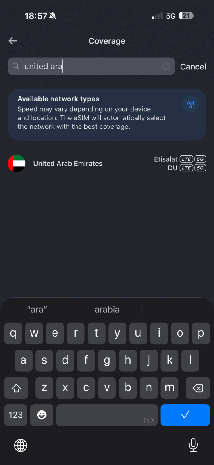 Lotniska w Londynie i Dubaju były z kolei dobrym testem pod kątem wygody. Oba miejsca mają Wi-Fi, ale zwykle z jakimś portalem logowania, ograniczeniem czasu albo wycinaniem części usług. Z Yesim po prostu wychodziłem z samolotu, odświeżałem maila, sprawdzałem gate dalszego lotu we Flighty, a jeśli trzeba było — robiłem hotspot dla laptopa. Bez kombinowania z rejestracją, kodami SMS czy innymi cudami.