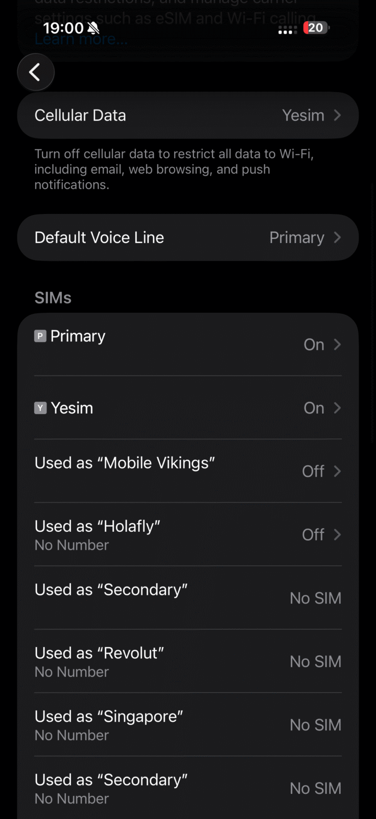 Dobra praktyka jest taka, żeby fizyczną kartę z polskim numerem zostawić aktywną, ale ustawić ją tylko do rozmów i SMS-ów. Ewentualnie, przezorni mogą wyłączyć całkowicie polską kartę SIM w ustawieniach telefonu, jeśli nie zależy im na odbieraniu SMS-ów i połączeń podczas pobytu za granicą. Dane idą przez Yesim, dzięki czemu nie generujemy absurdalnych kosztów roamingu, ale nadal możemy odbierać kody SMS czy połączenia z banku albo od kuriera, który postanowi zadzwonić akurat wtedy, gdy my lądujemy na innym kontynencie.