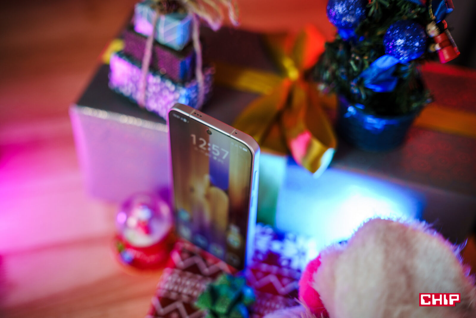 Pierwsze, co rzuca się w oczy, to ekran – duży, wykonany w technologii AMOLED i odświeżany z częstotliwością 120 Hz. Kolory są nasycone, czerń idealna – oglądanie „Kevina„, „Listów do M.”, „Szklanej Pułapki” czy nadrabianie seriali na Netfliksie pod kocem to na tym ekranie czysta przyjemność. Do tego mamy głośniki stereo z funkcją podbicia głośności do 300% – idealne, gdy chcesz puścić „Last Christmas” (apage!) podczas sprzątania i słyszeć muzykę w drugim pokoju – nie ma lepszej prośby o słuchawki w ramach prezentu pod choinkę.