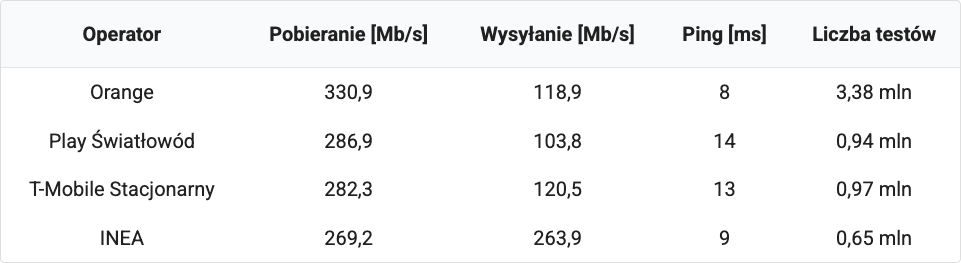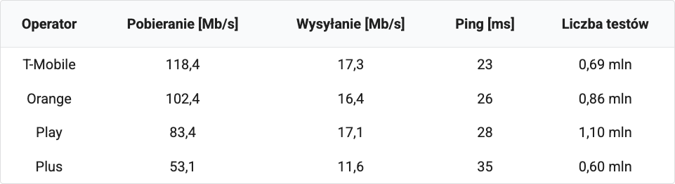 Co ciekawe, na liderów prędkości Internetu stacjonarnego wyrośli operatorzy, którzy kojarzyli nam się jeszcze niedawno głównie z usług mobilnych. To też pokazuje, jak mocno inwestują w rozbudowę sieci, nie tylko mobilnej. I tak liderem prędkości Internetu stacjonarnego jest T-Mobile, przed Play i Orange: