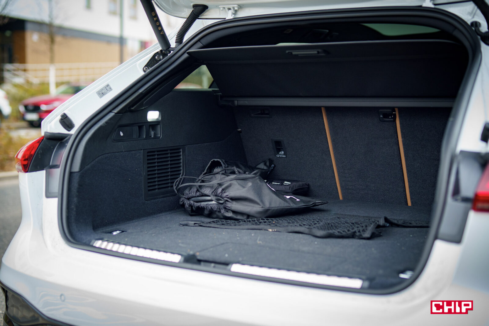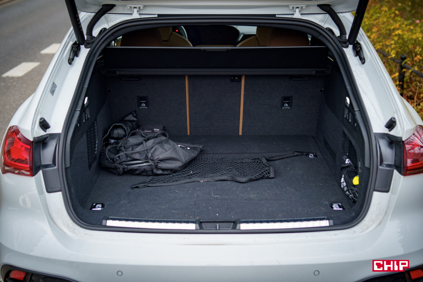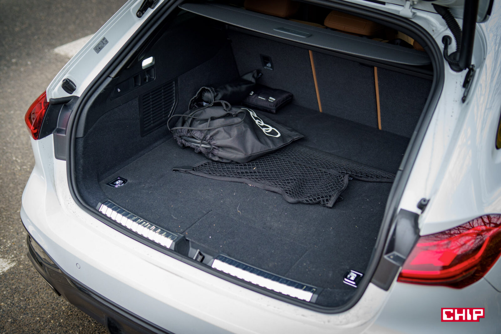 Bagażnik w Audi A5 Avant e-hybrid może rozczarować, bo ma pojemność tylko 361 litrów i 1 306 litrów po złożeniu tylnej kanapy. Bardzo skromnie.