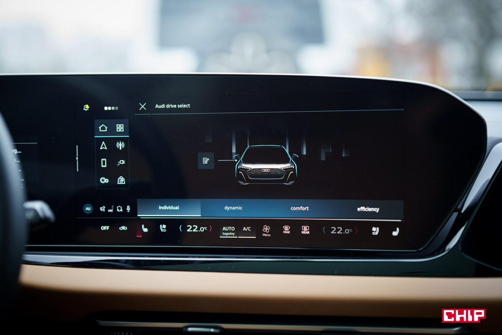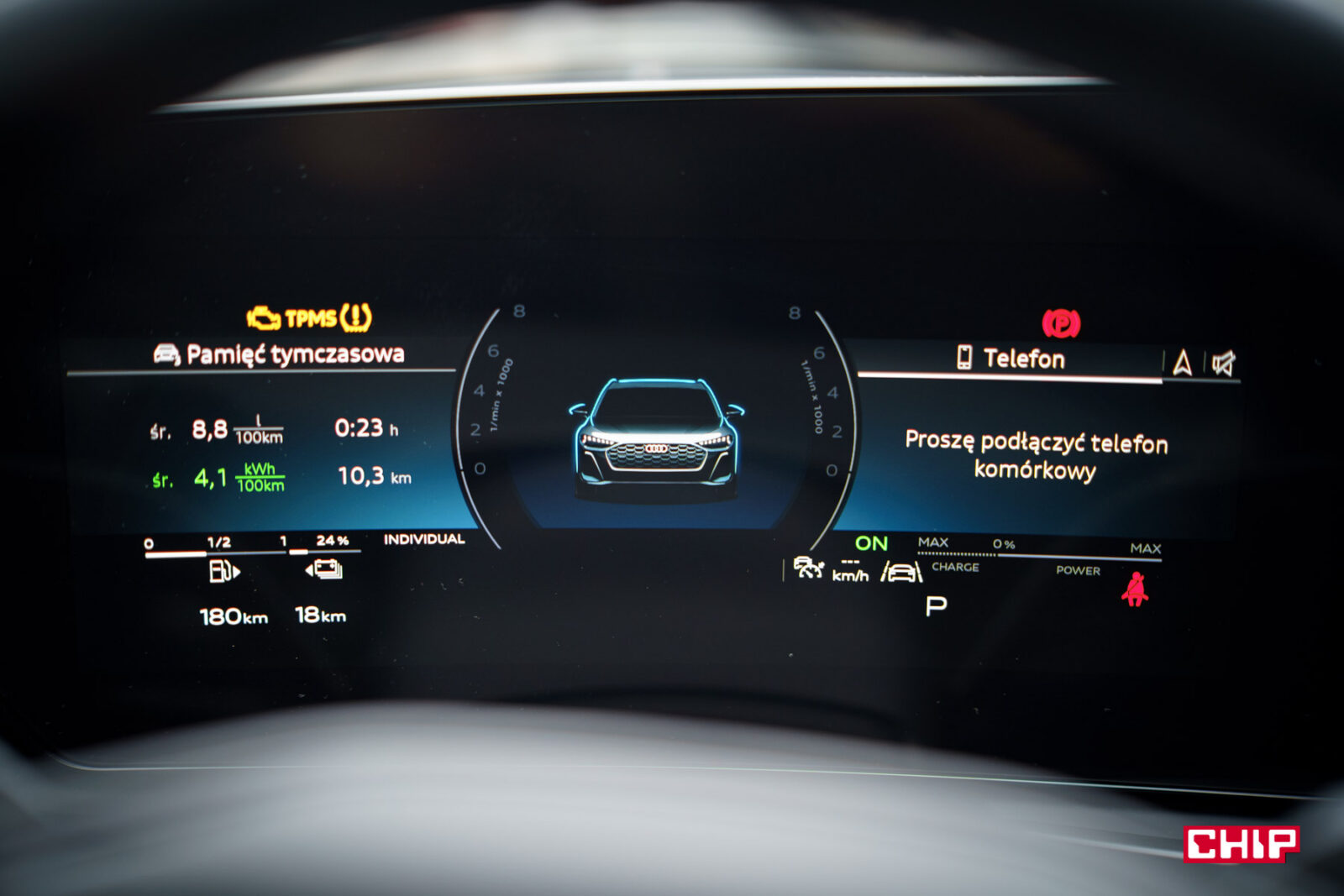 Zasięg w trybie elektrycznym niewątpliwie jest jedną z zalet A5, ale mi osobiście najbardziej podobało się to, w jak prosty sposób można zarządzać zużyciem prądu i jak szybko ładuje się tą baterię. Zacznijmy od zarządzania prądem.