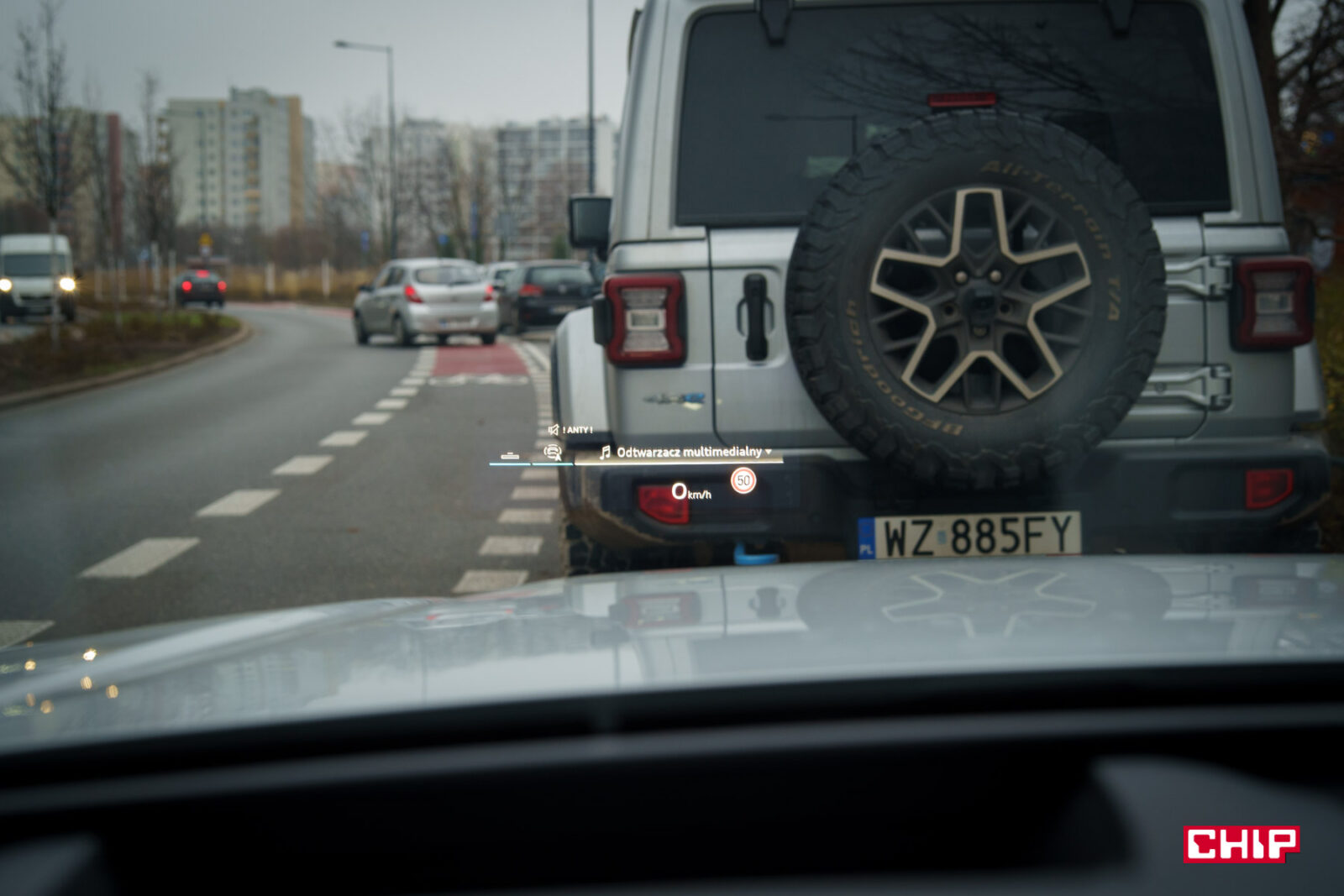 Ekran kierowcy uzupełnia spory head-up. Jasny, wysokiej jakości, wyświetlający wszystkie niezbędne informacje.