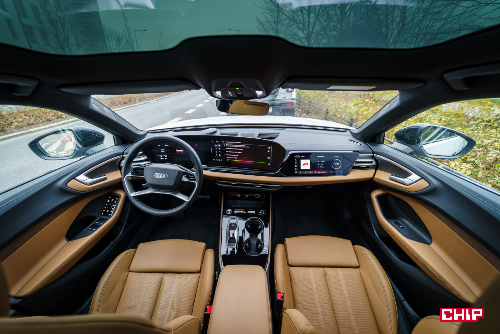 Audi A5 Avant e-hybrid ma w standardzie dwa ekrany. Trzeci to element opcjonalnego pakietu Tech Pro. Głównym punktem jest centralny ekran o przekątnej 14,5 cala w technologii OLED. Zawsze patrząc na ekran główny w nowym Audi zastanawiam się, dlaczego tak mało producentów sięga po OLED-y.