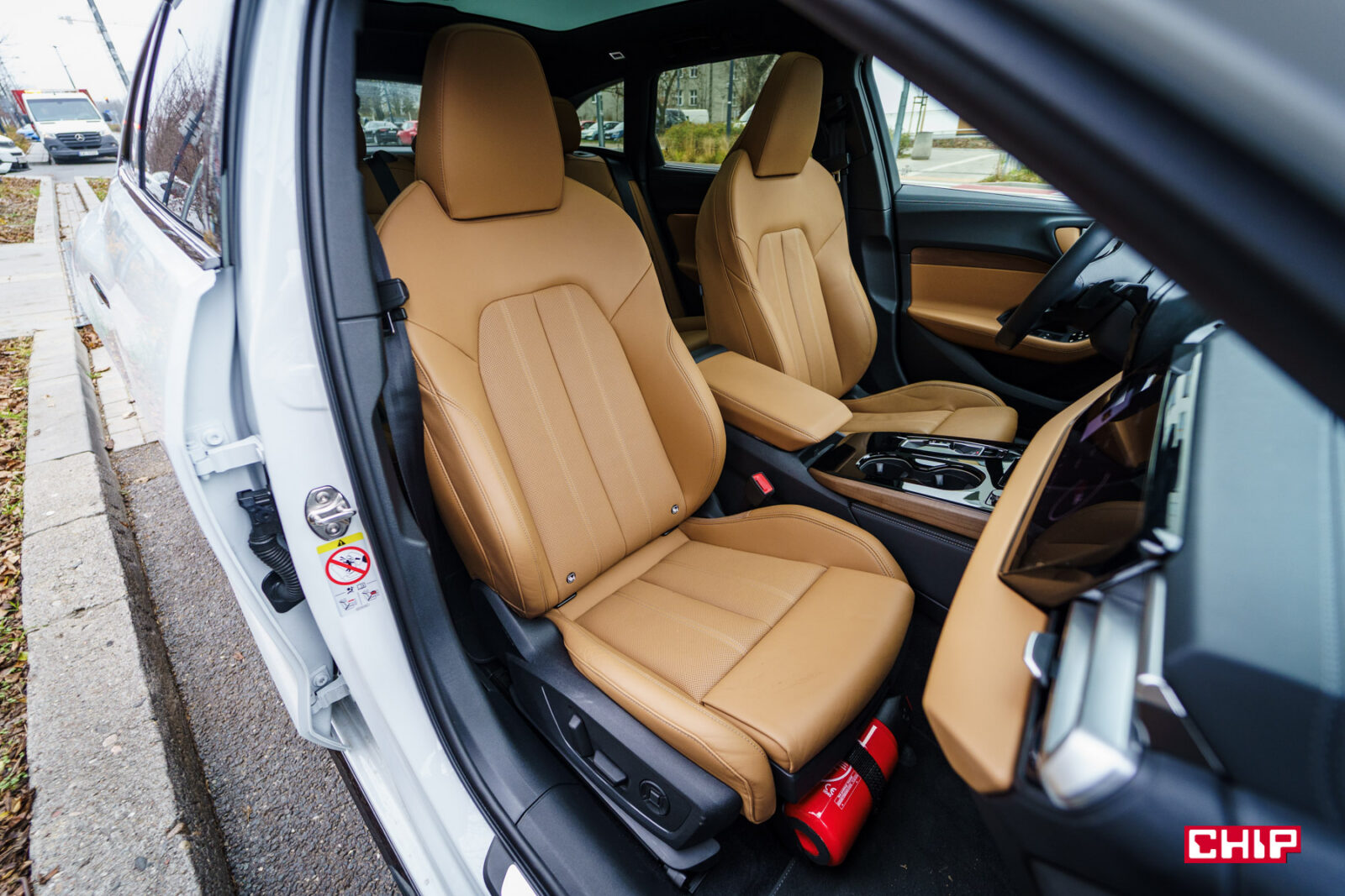 Przede wszystkim jest to kolor tapicerki. Za sportowe fotele w brązowym kolorze z elektryczną regulacją i wentylacją trzeba sporo dopłacić, bo ponad 17 000 zł, ale są to fotele bardzo wygodne. Duże, miękkie, solidnie trzymające w zakrętach, idealne w długie podróże. Wraz z fotelami dostajemy pasujące kolorystycznie obicie drzwi, a w testowanym egzemplarzu mamy na nich dodatkowo listwy z drewna jabłoni. Jak elegancko to po całości.