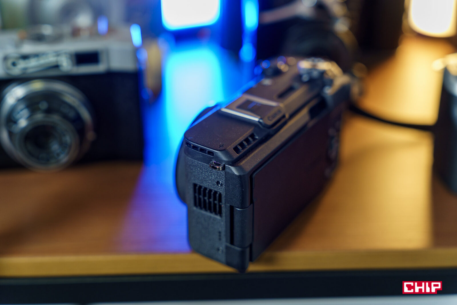 Konstrukcyjnie wszystko jest na swoim miejscu, a uwagę może przyciągać kratka na lewym boku. To wlot powietrza, którym zasysane jest do wnętrza, co chłodzi podzespoły, głównie podczas długiego nagrywania wideo. Dodajmy jeszcze, że obudowa nie jest w żaden sposób uszczelniona.